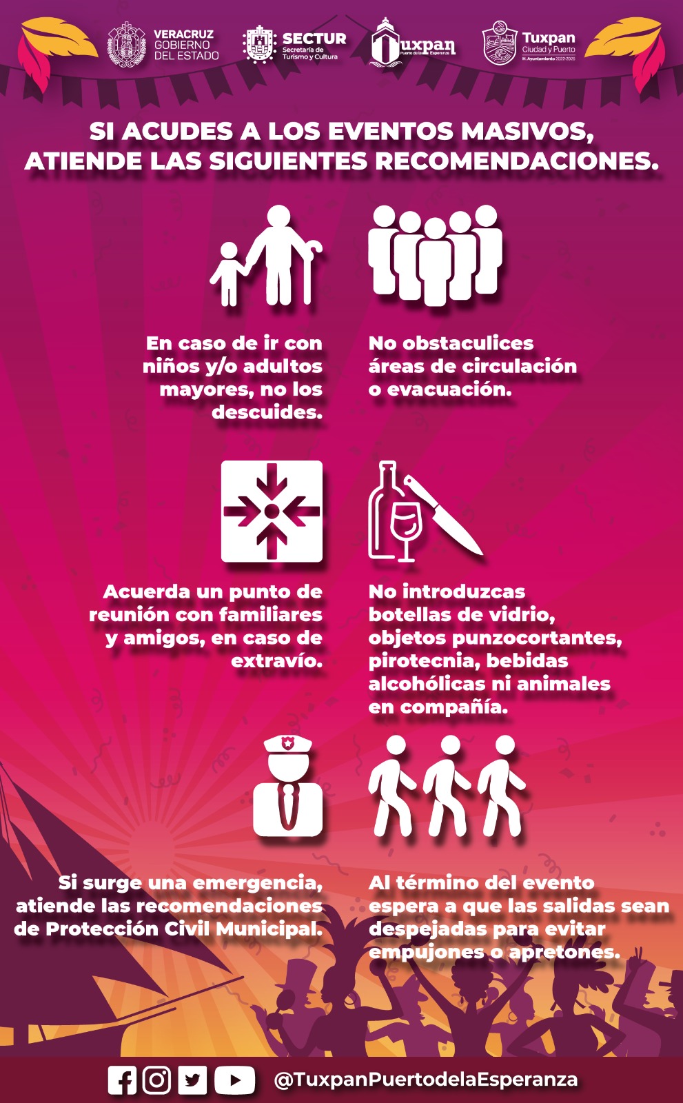 -No llevar objetos punzocortantes, pirotecnia, bebidas alcohólicas ni animales de compañía.