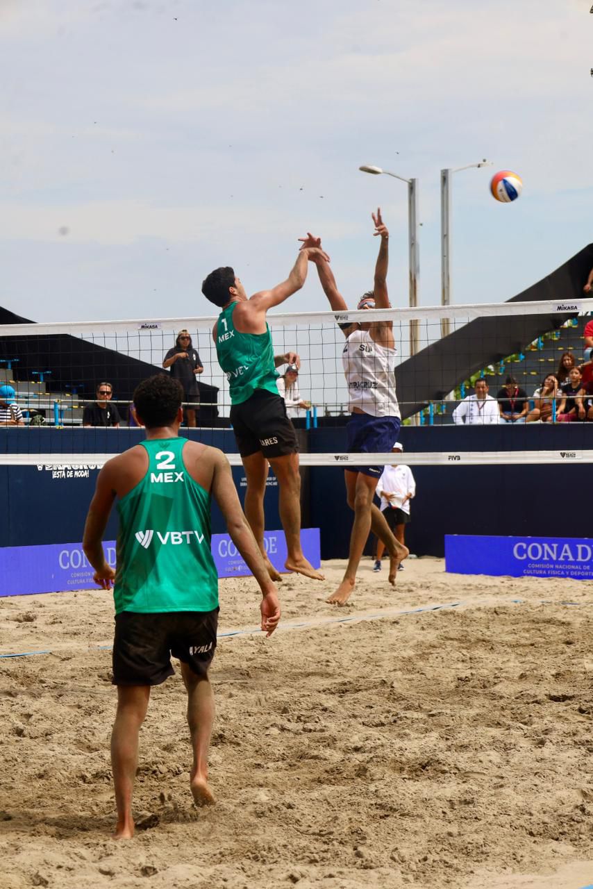 El equipo mexicano, integrado por Inés Lares y Carlos Andrés Ayala, debutó con una emocionante victoria frente a la dupla suiza Breer/Flückiger, imponiéndose en tres sets ante el respaldo del público local que llenó la playa a la 1 de la tarde.