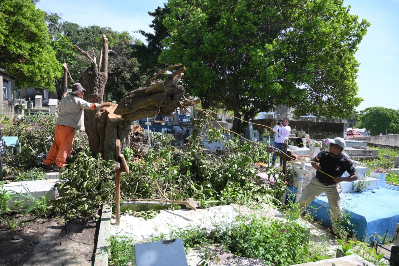 Entre las labores destacan la limpieza general, retiro de escombro, revisión de piletas, atención a árboles que han dañado tumbas y la realización de un censo de sepulturas afectadas. Asimismo, como medida preventiva, el agua de los floreros será sustituida por tierra para evitar criaderos de mosquitos.