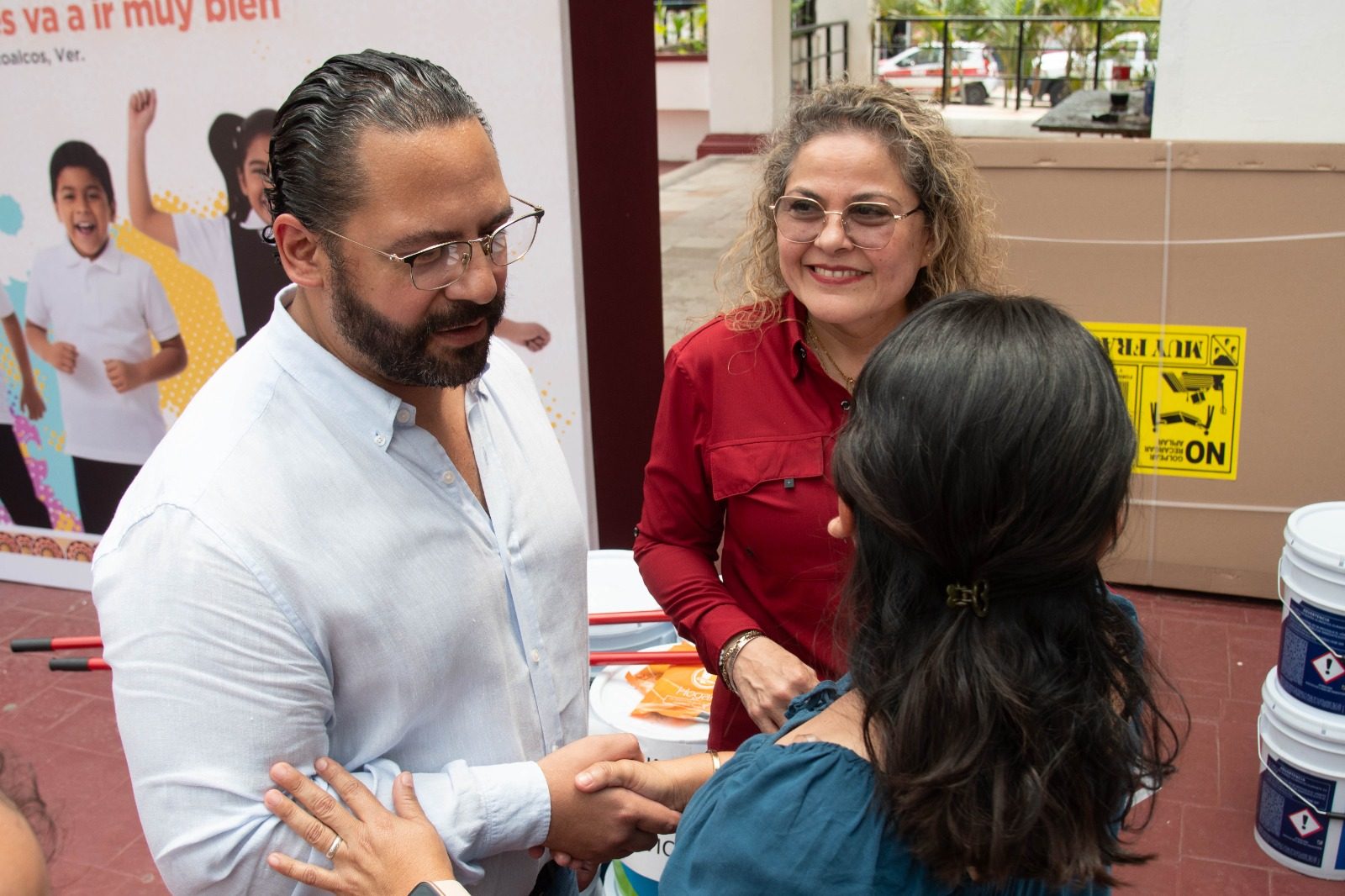 Arranca Pedro Miguel Rosaldo y Margarita Santopietro programa de apoyo a escuelas en Coatzacoalcos