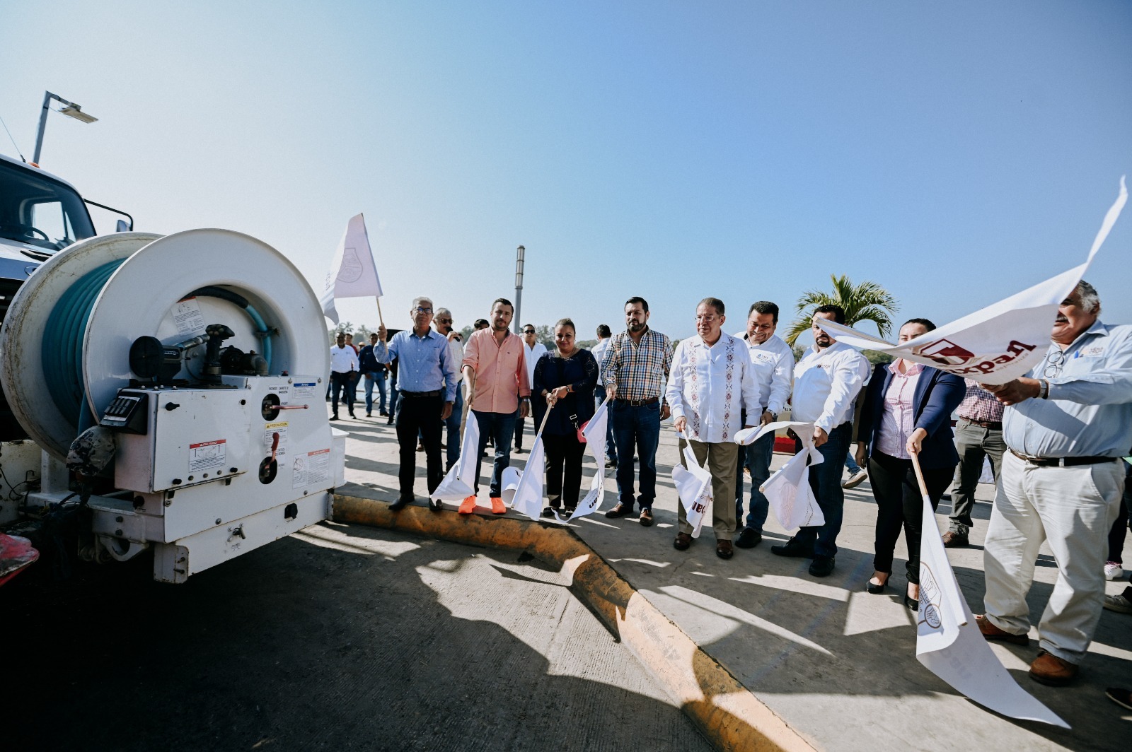 El banderazo estuvo a cargo del presidente municipal José Manuel Pozos Castro; el jefe de la Oficina Operadora de la CAEV en Tuxpan, Jorge Alberto Vargas Chavelo; las regidoras Maryanela; Monroy Flores y Anahí Aguilar López; los regidores Juan Gómez García, Axel Bernal Herrera y Luciano Folgueras Pioli.