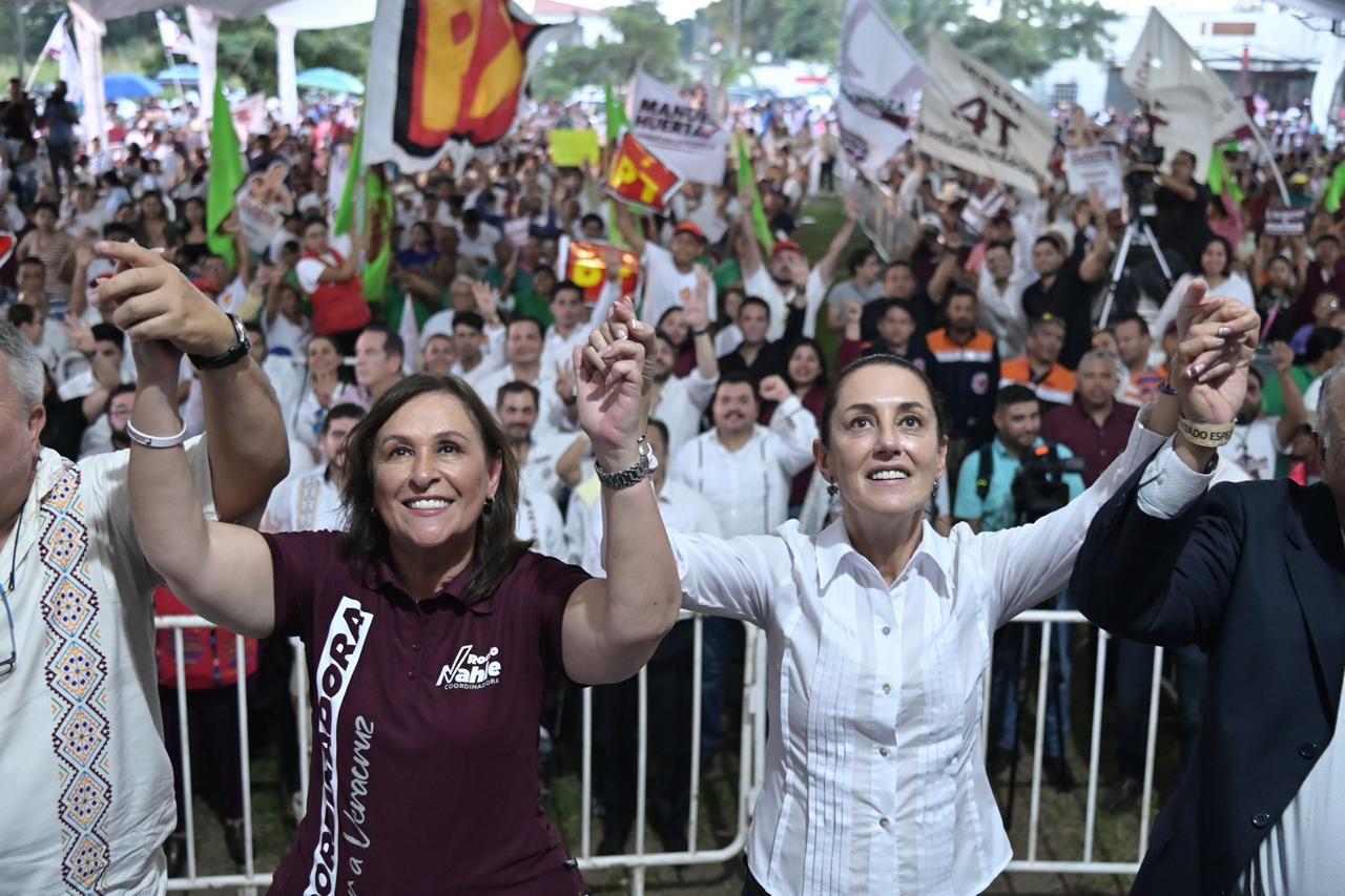 “Y miren si no va a querer a Veracruz, hace 59 días, el 20 de noviembre arrancó su precampaña en territorio veracruzano, mañana ella concluye después de 60 días su precampaña y vino a cerrar la gira por todos los estados de la República nuevamente en Veracruz”, añadió.