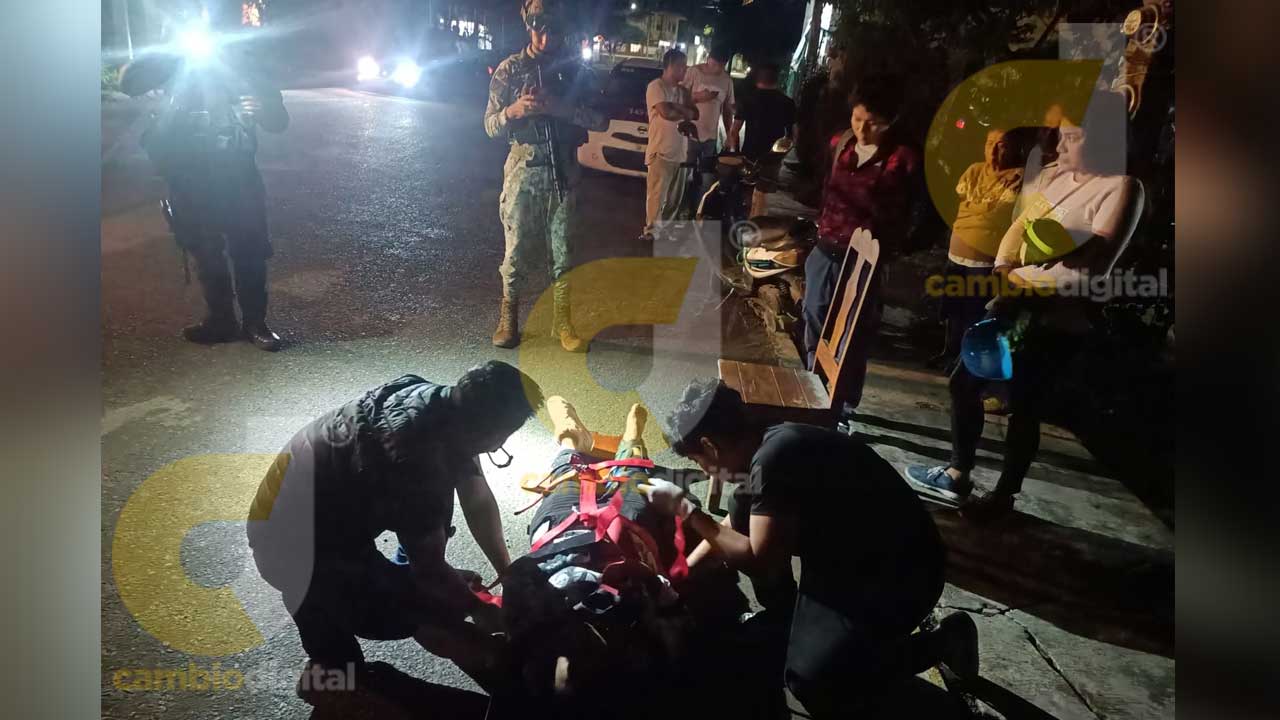 Dicha persona viajaba a bordo de una motocicleta y habría sido impactada por un taxi, provocándole diversas contusiones en el cuerpo donde los brindaron la atención prehospitalaria para ingresarla a la Policlínica para su atención médica mientras el conductor responsable huyó del lugar, pero la unidad está plenamente identificada.
