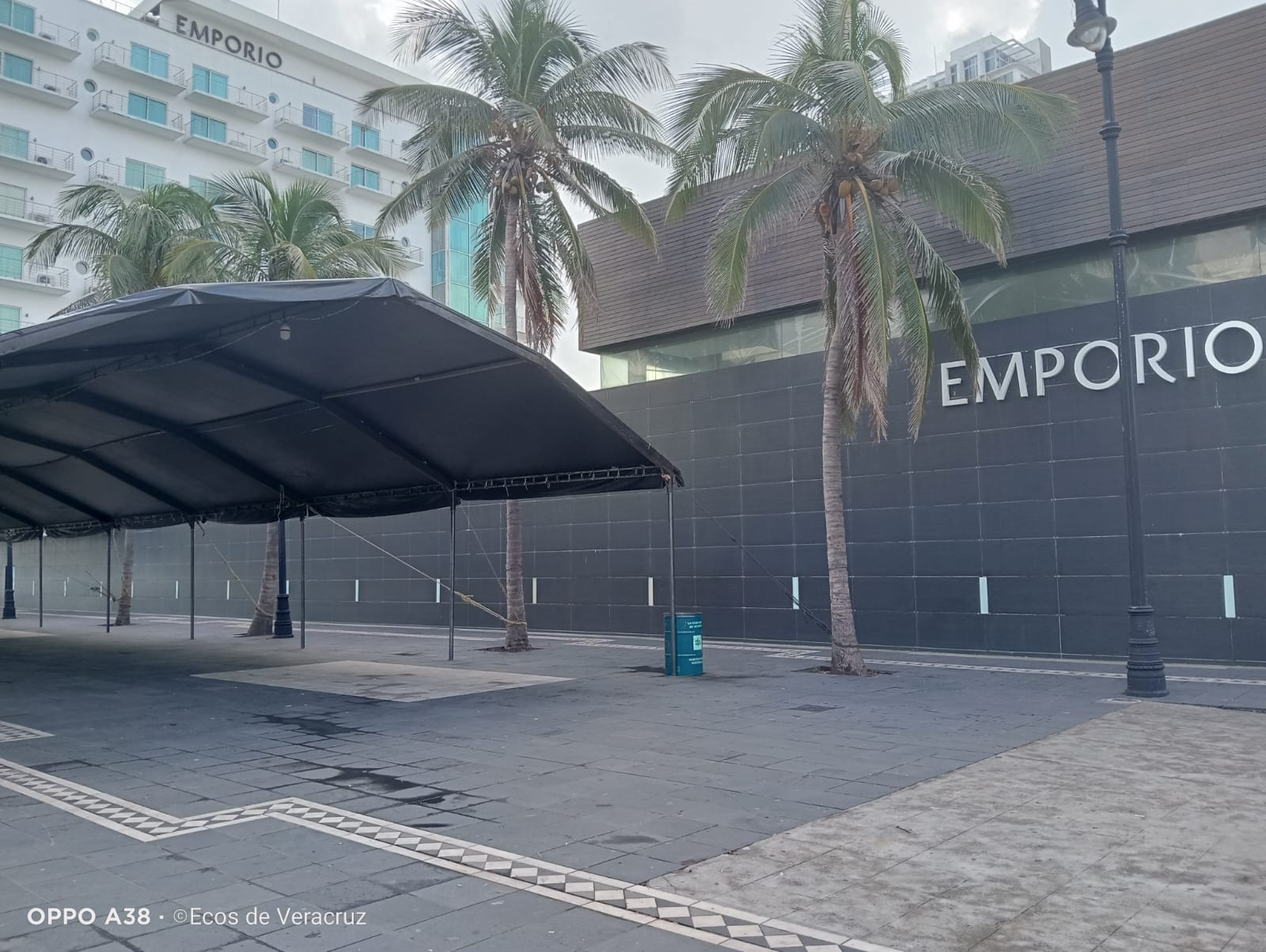 A un costado del hotel Emporio fue instalada una carpa gigante, de manera extraoficial se menciona que ahí serán reinstalados los comerciantes, mientras concluyen los trabajos de construcción de la nueva plaza Heroísmo Veracruzano.