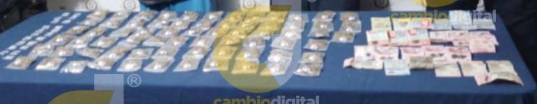 Mientras que ha Santiago “N” le fueron aseguradas 21 bolsitas de plástico cuadradas, 15 con una calcamonía de un perico y otras 6 con la figura de un osito que contienen una sustancia granulosa- blanquecina con características a la droga denominada “cristal” así como $600 pesos en efectivo.
