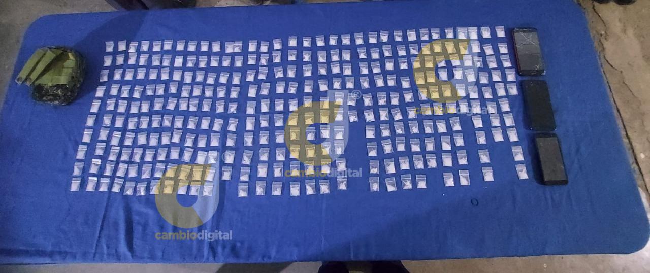 A estas personas se les aseguraron 302 bolsitas de plástico transparente en forma de cuadritos, conteniendo una sustancia blanquecina-granulada al parecer droga conocida como "cristal".