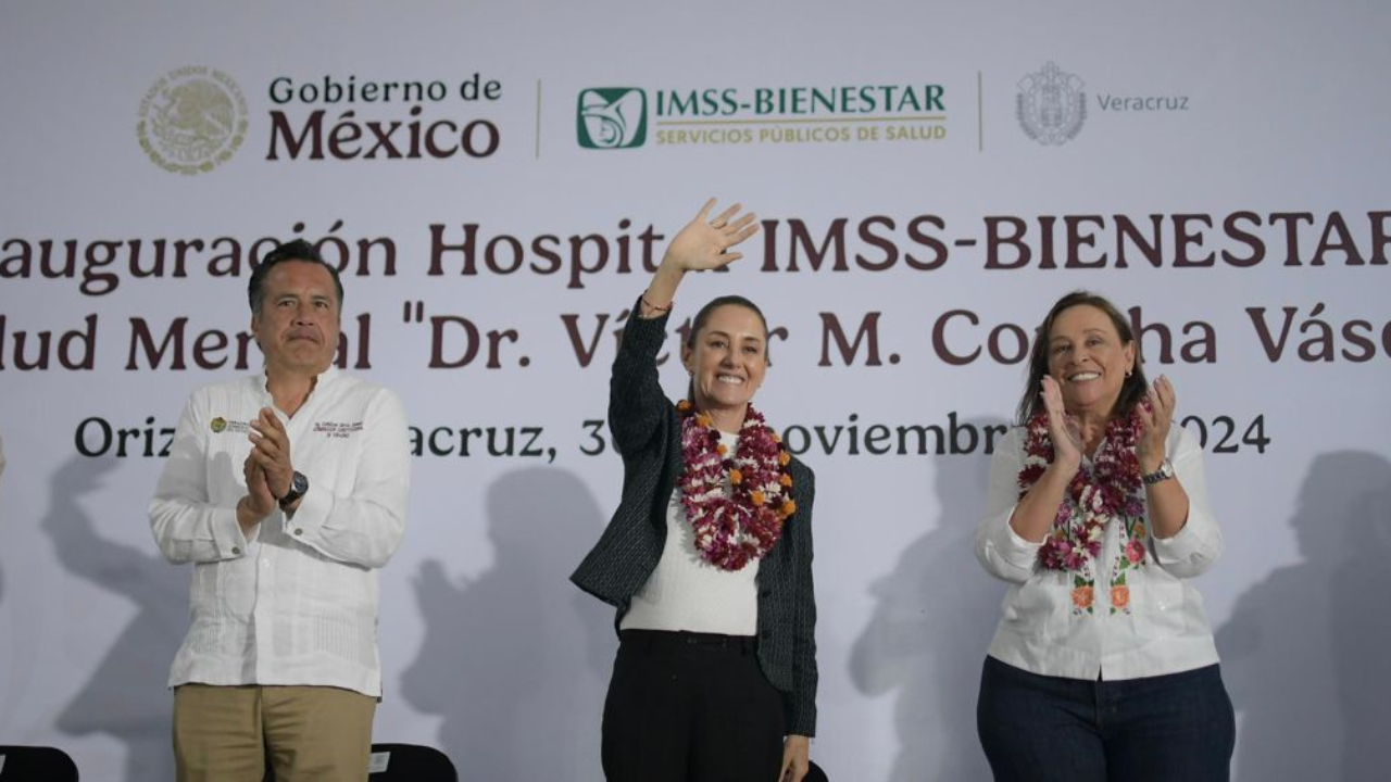 Orizaba, Ver.- Previo a su toma de protesta como gobernadora constitucional del Estado de Veracruz, la gobernadora electa Rocío Nahle García acompañó a la presidenta de México, Claudia Sheinbaum Pardo a la inauguración del hospital del IMSS-Bienestar de Salud Mental "Dr. Víctor M. Concha Vásquez"