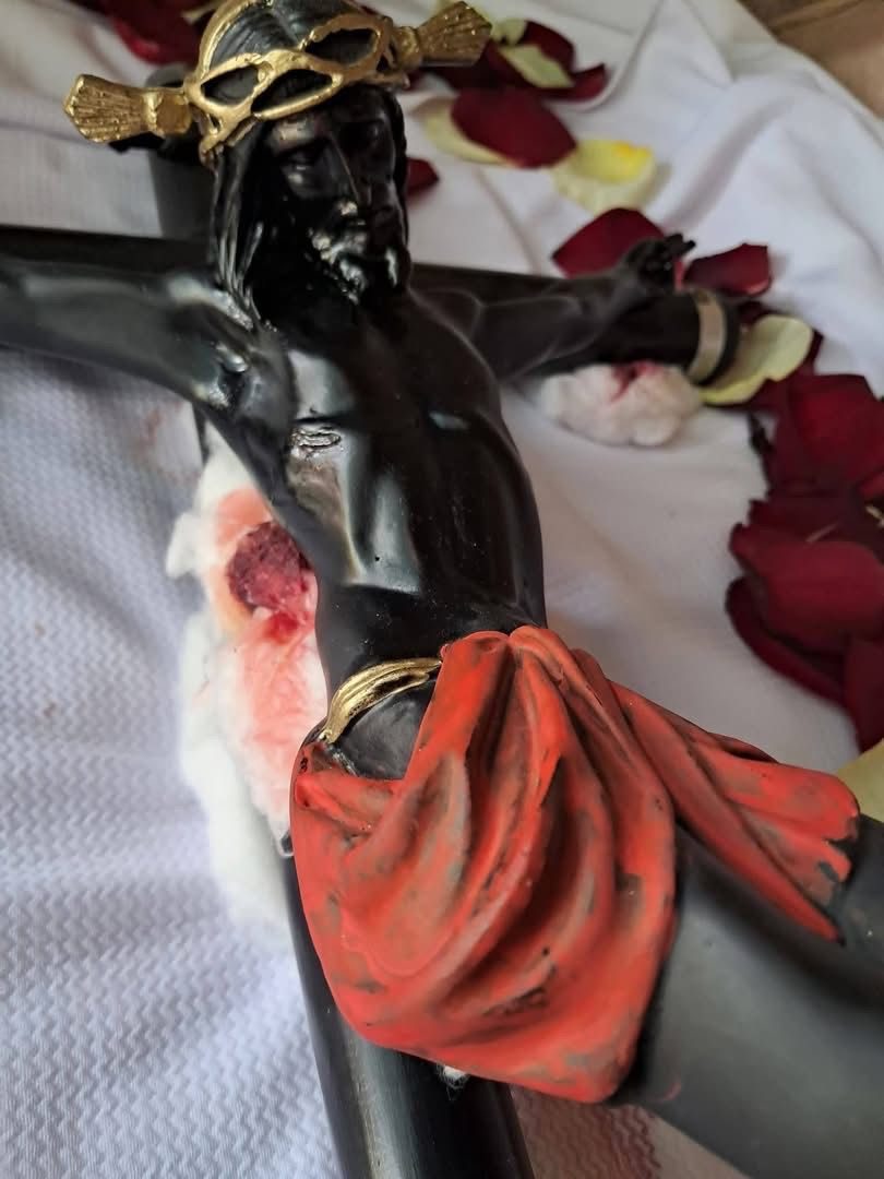 Asombroso fenómeno en comunidad de San Andrés Tuxtla: Agua y sangre brotan de las llagas de una imagen del Cristo del Veneno