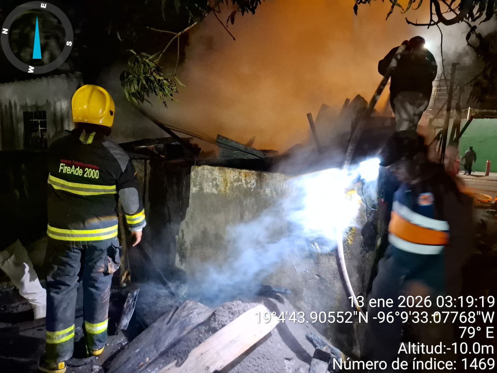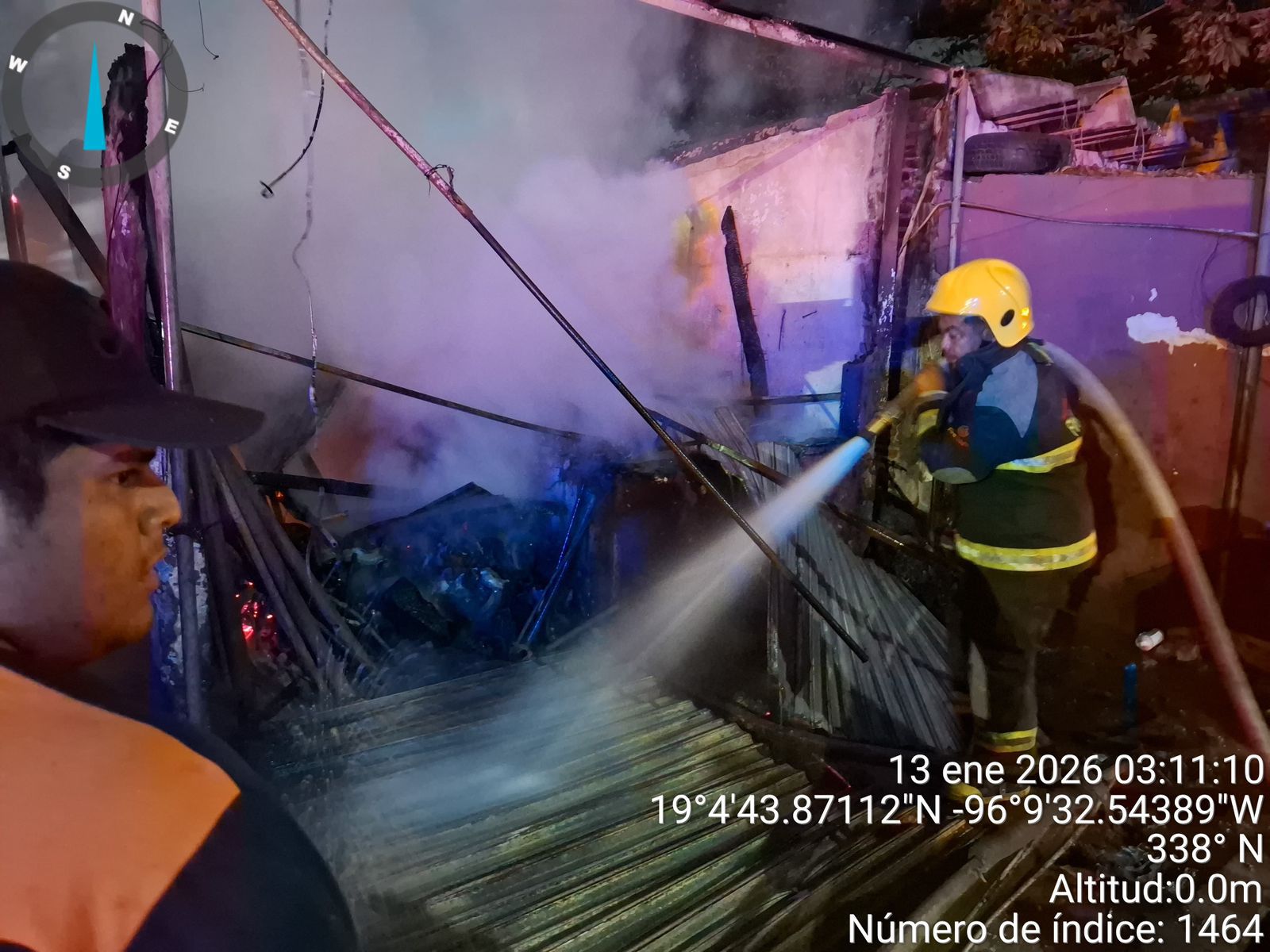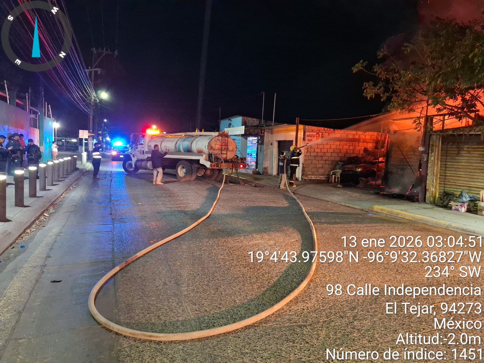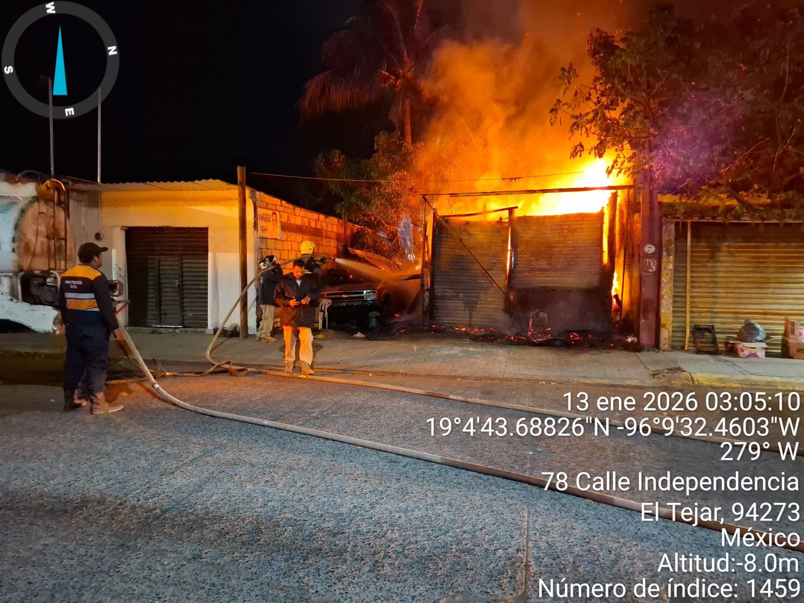 Medellín, Ver.- Por instrucciones del alcalde Samuel Acosta, personal de la Dirección de Protección Civil Municipal, a cargo de Antonio Rosas, atendió de manera inmediata el incendio registrado la madrugada de este martes en un taller mecánico, ubicado sobre la avenida Independencia, en la localidad de El Tejar.