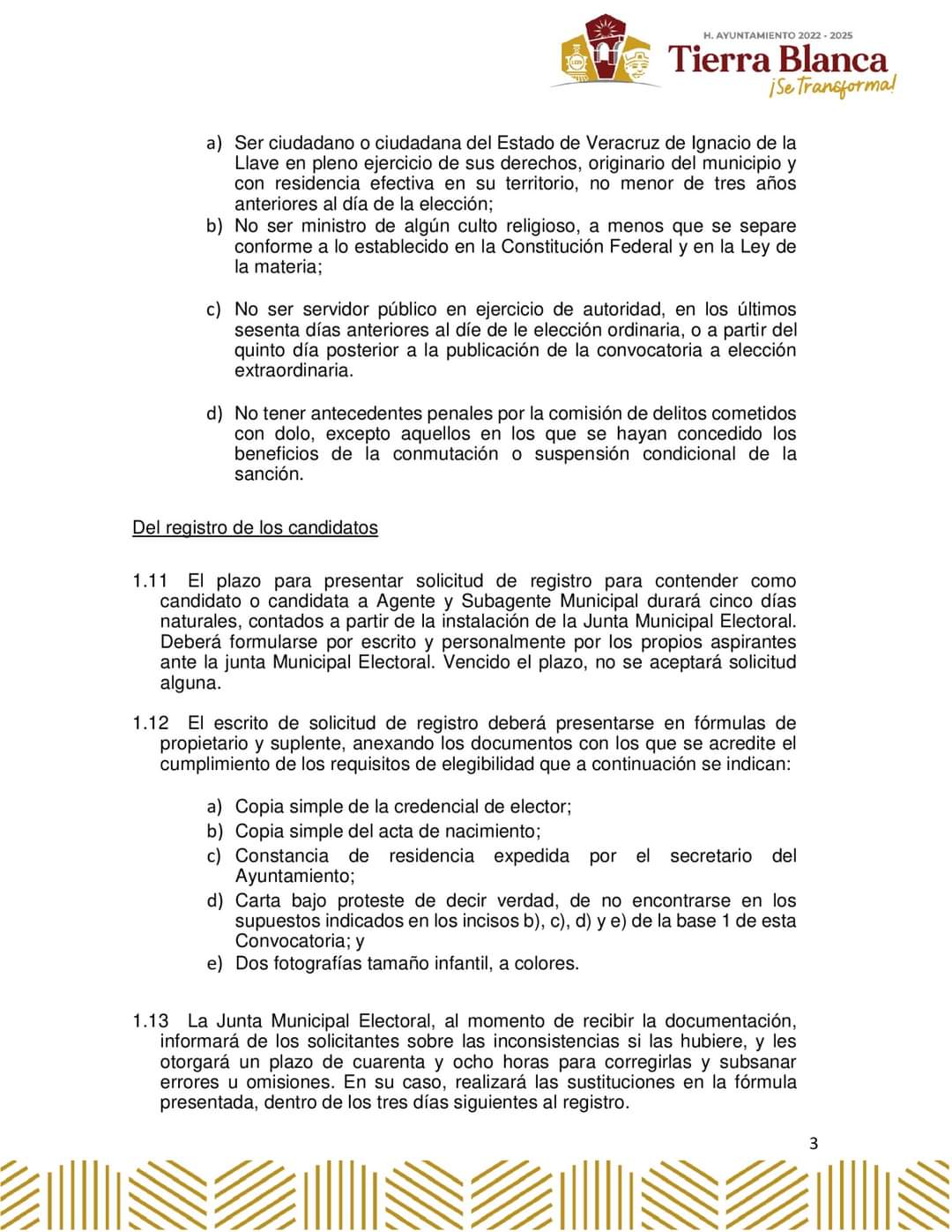 ¡Atención Tierra Blanca! convocatoria para participar en elección de agentes y subagentes municipales