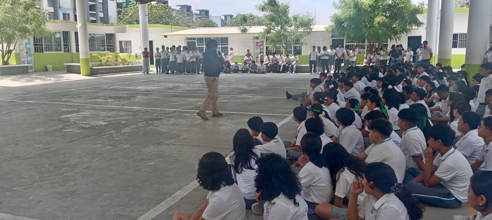 Ante ello, por instrucciones del presidente municipal, el Ing. Samuel Acosta Martínez, se activaron de inmediato los protocolos preventivos, enviando a elementos de la Policía Municipal para brindar acompañamiento, generar un ambiente de tranquilidad y ofrecer pláticas preventivas a las y los estudiantes sobre la importancia de este tipo de situaciones.