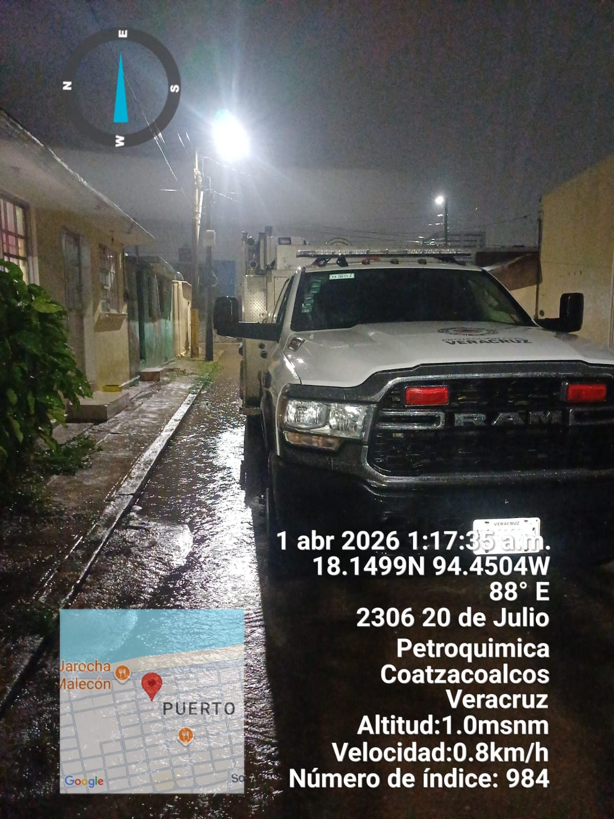 En cuanto a incidentes eléctricos, se atendió un reporte de cables haciendo corto circuito en la intersección de Juventino Rosas y Pedro Moreno, mientras que también se realizó el retiro de andamios en el Puente Coatzacoalcos I para prevenir accidentes.