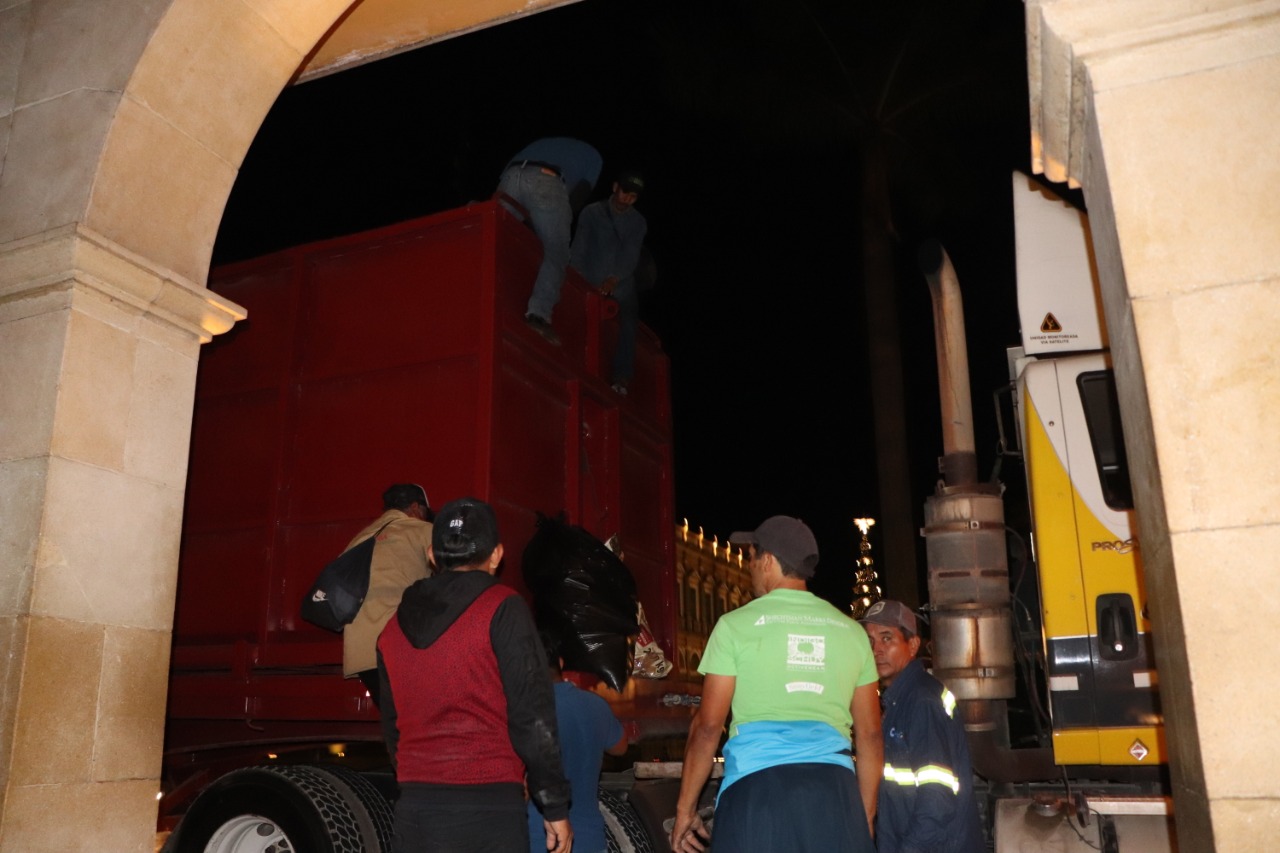 Desde el parque 21 de Mayo, el presidente municipal coordinó las tareas emergentes de servicios de Limpia Pública donde salieron en fila dos góndolas al área comercial de la ciudad para retirar los montículos de basura.