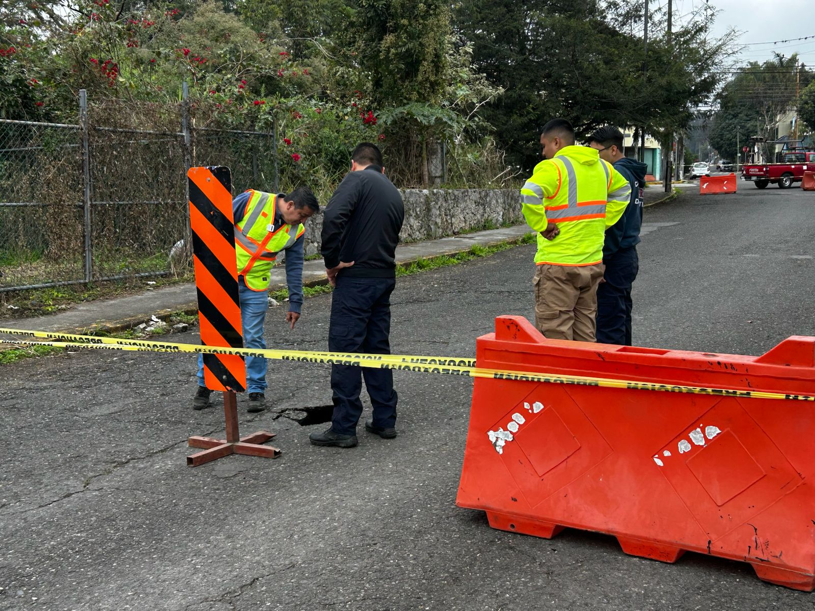 El coordinador de Protección Civil Municipal y Gestión Integral de Riesgos, Luis Ojeda Cid informó que, acudieron al sitio para verificar la situación y proceder al cierre de la vialidad, con el objetivo de proteger la integridad de peatones y automovilistas, en tanto se realiza la valoración del problema.