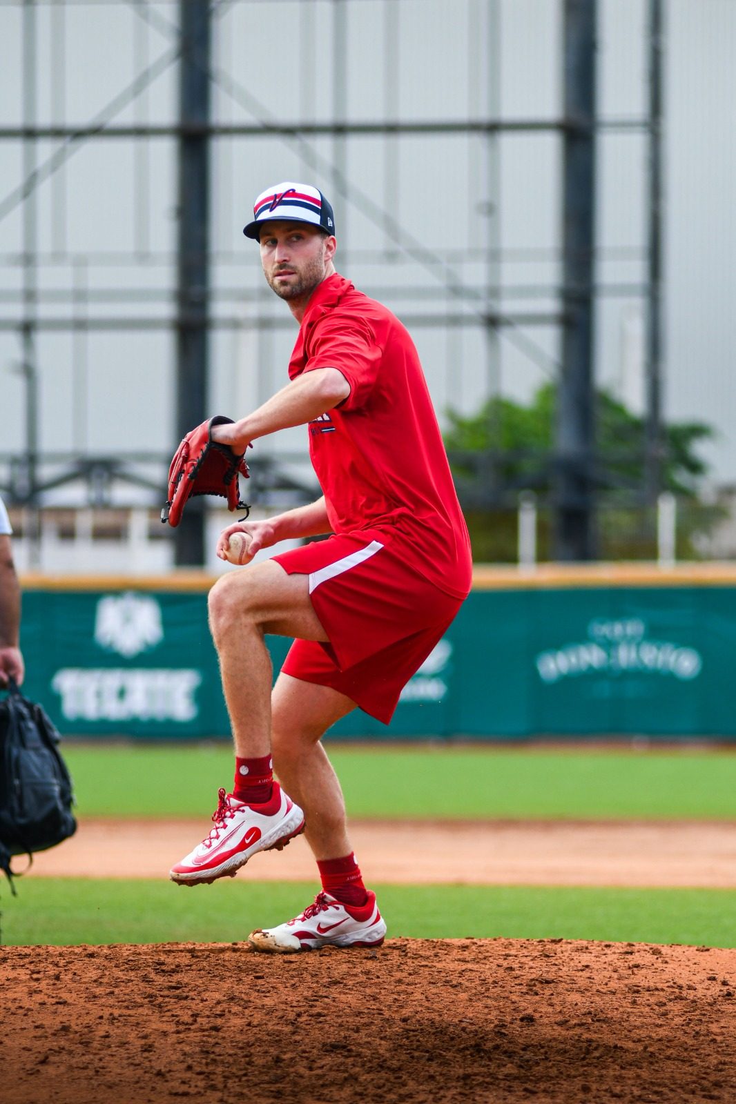 El staff de pitcheo encabezado por Eleazar Mora y Héctor “Choco” Navarro, desde muy temprano iniciaron con bullpen con Dinelson Lamet, Braulio Torres-Pérez, Mario Jiménez y Jonathan Aro.