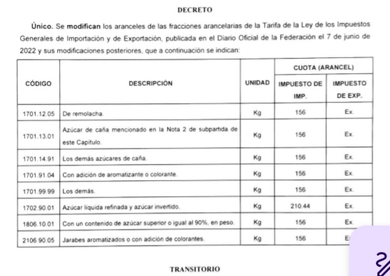 Carlos A. Carrillo.- Aumentó en 156 por ciento el arancel mexicano a la importación de azúcar, según copia del decreto de la presidenta Claudia Sheinbaum Pardo publicado en el Diario Oficial de la Federación el 10 de noviembre, en edición vespertina, que ya tienen en su poder cañeros de la cuenca.