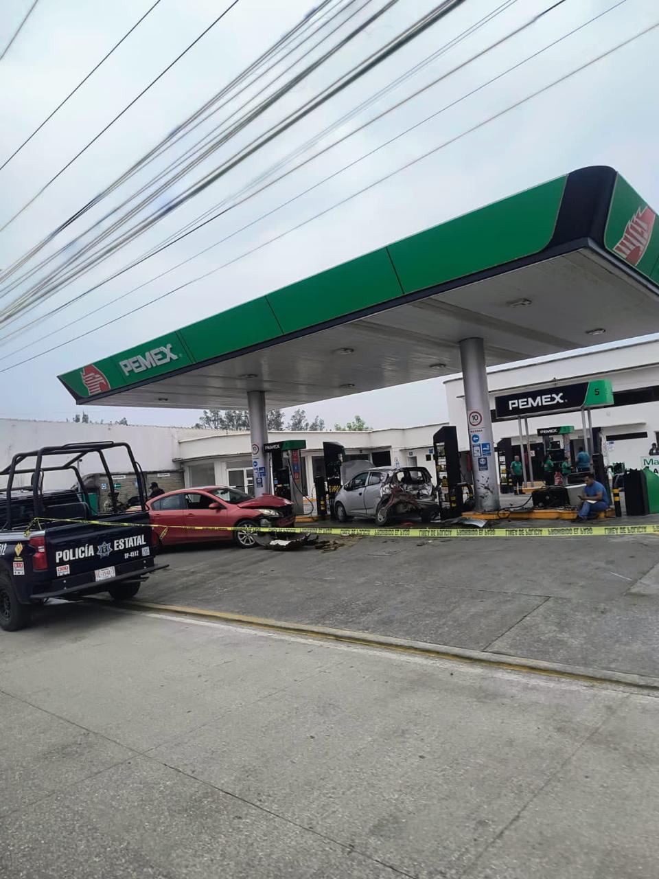 La gasolinera sufrió daños en dos dispensadores de combustible y parte de la infraestructura.