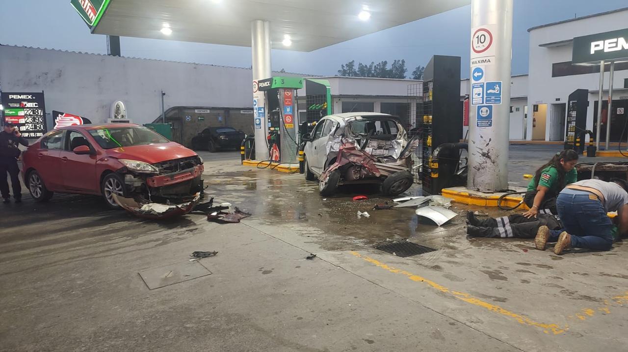 El automóvil Mazda 3 rojo, manejado por Eduardo M. E. impactó al automóvil Chevrolet Spark color gris conducido por Adrian P quien se encontraba cargando gasolina.