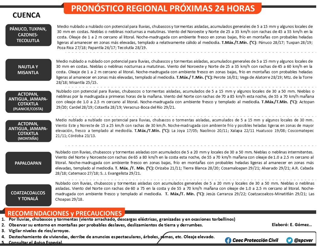 Autoridades de Poza Rica exhortan a la población a mantenerse informada ante condiciones meteorológicas