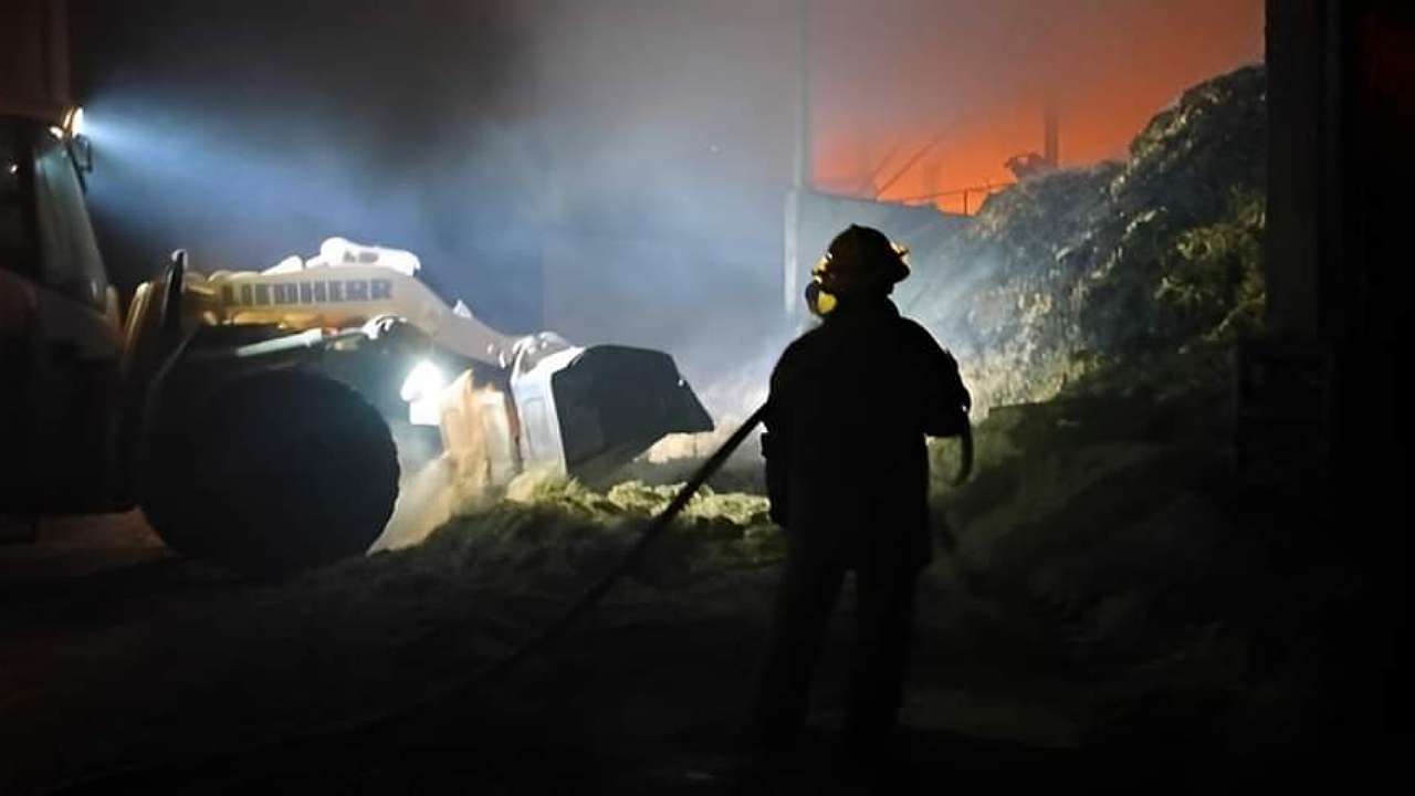 San Andrés Tuxtla, Ver.- Por instrucciones de la alcaldesa María Elena Solana Calzada, personal de Protección Civil y Bomberos, a cargo del Ing. Josué Ceja Espejo, continúan apoyando las labores para sofocar el incendio en una de las bodegas del Rancho Santa Rita ubicado sobre la carretera federal 180 a la altura de la Ciénega, Santa Rita, en el municipio de Lerdo de Tejada.