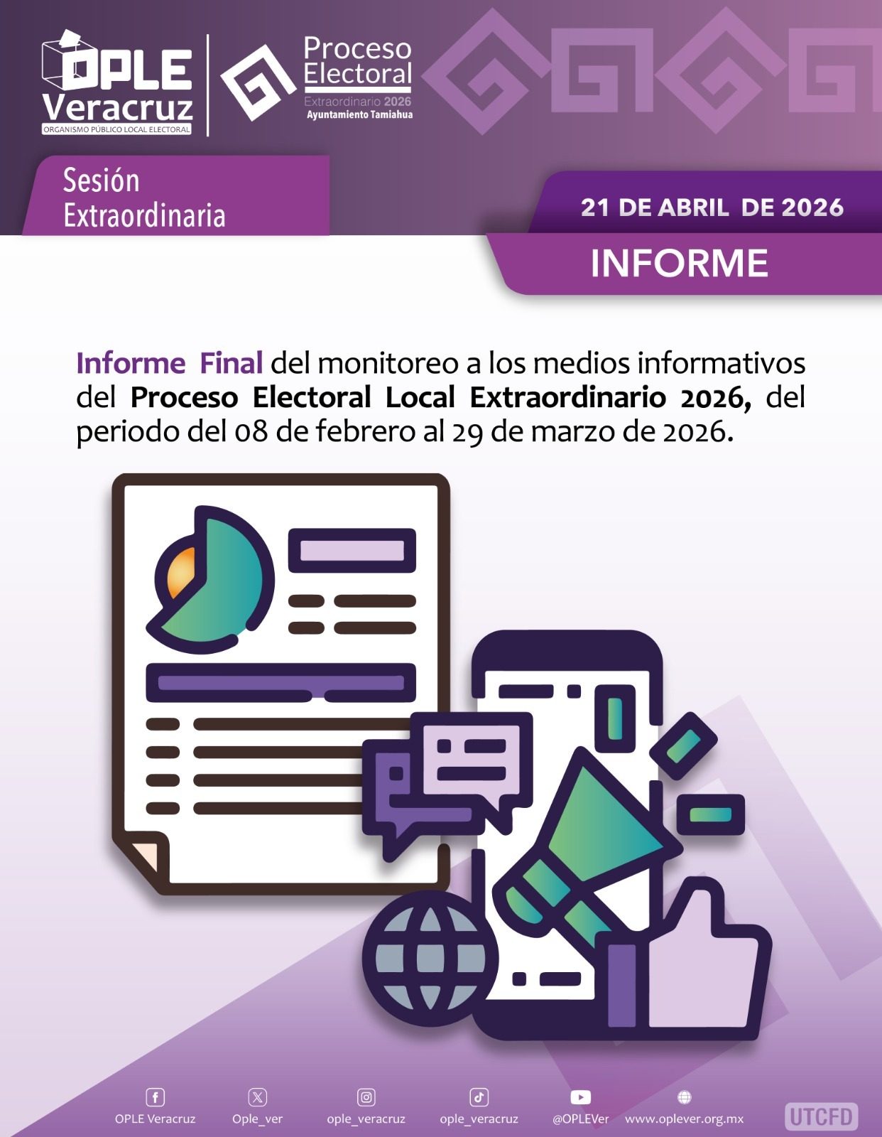 Por último, se presentó el Informe Final del monitoreo a los medios informativos del Proceso Electoral Local Extraordinario 2026, del periodo del 08 de febrero al 29 de marzo de 2026.