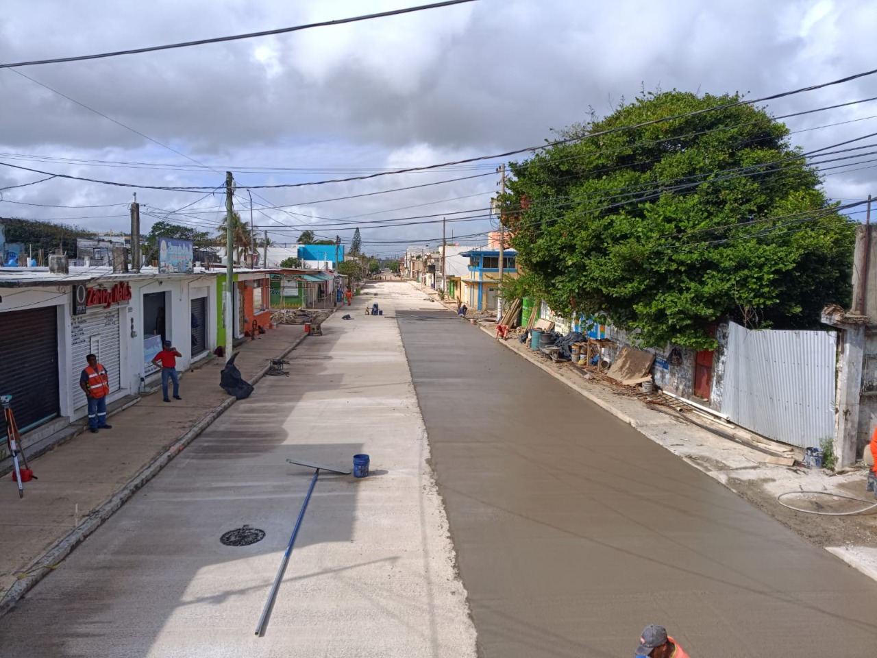 También, como parte de la rehabilitación de drenaje sanitario que se lleva a cabo en la avenida Quevedo de la colonia Puerto México, realizaron el colado el cual forma parte del proceso de la obra para ser entregada en breve a los vecinos de este sector.