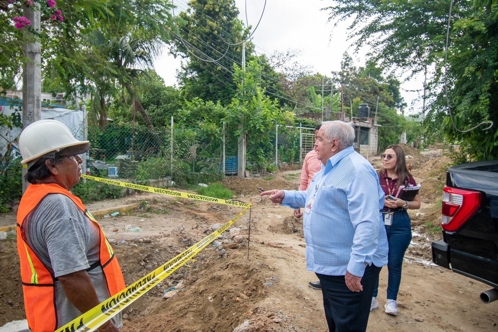 Esta semana el presidente municipal acompañado de integrantes del cuerpo edilicio, supervisó los trabajos de rehabilitación de drenaje y construcción de tomas domiciliarias para mejorar el abastecimiento de agua en las calles Colosio y Petróleos Mexicanos, de la colonia Los Sauces.
