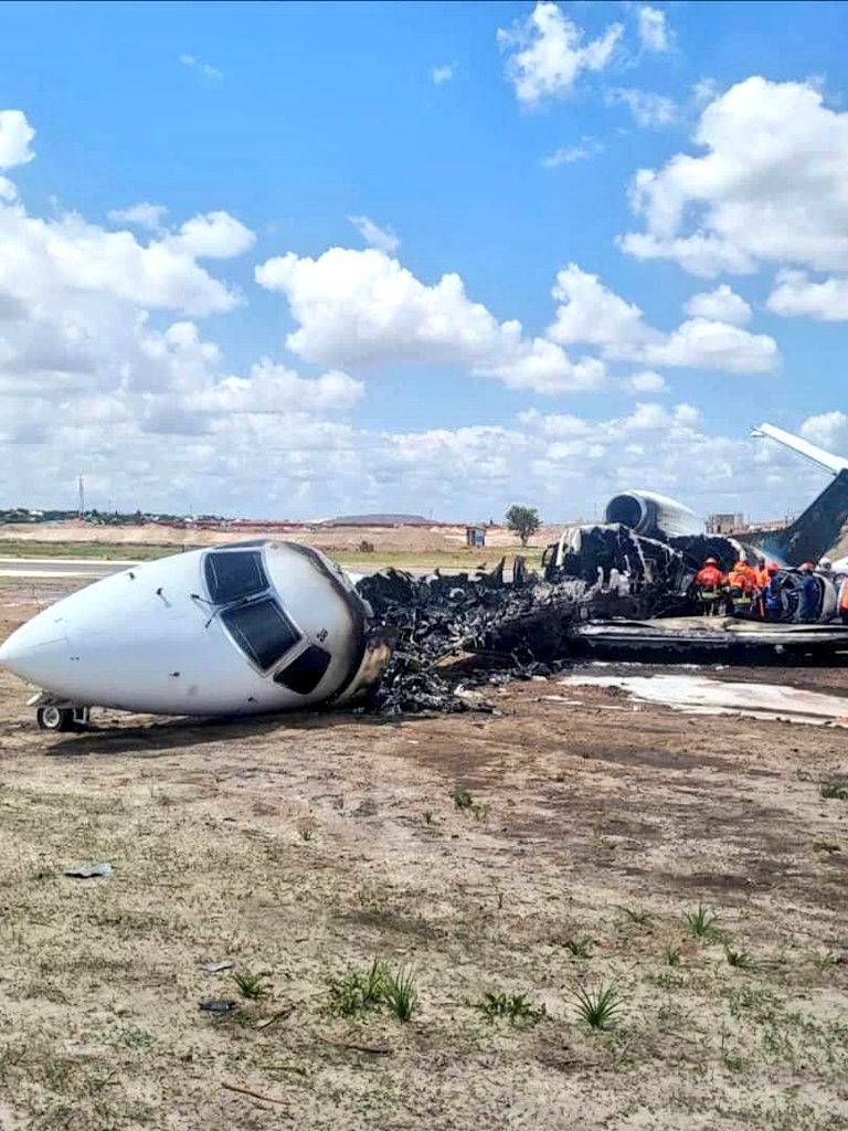 Las primeras versiones indican que el avión se salió de la pista, colisionó contra el suelo y se prendió en llamas. Isaac Nuembo, consejero de comunicaciones del ministro, reveló para medios locales que los pasajeros huyeron por su propia cuenta. Segundos después de la evacuación, trabajadores del aeropuerto y servicios de emergencia utilizaron mangueras para rociar con agua la aeronave en llamas.