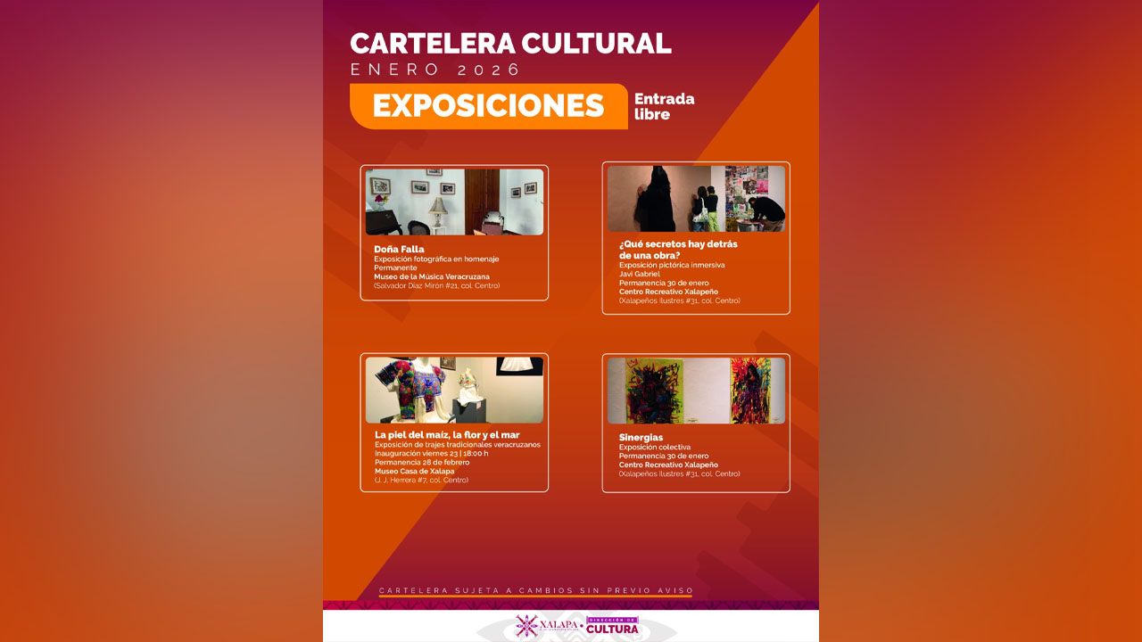 En el CRX se tendrá la exposición “¿Qué secretos hay detrás de una obra?”, y el viernes 23 de enero, a las 18:00 horas, se inaugurará la exposición “La piel del maíz, la flor y el mar”, muestra de indumentaria tradicional veracruzana, en el Museo Casa de Xalapa.