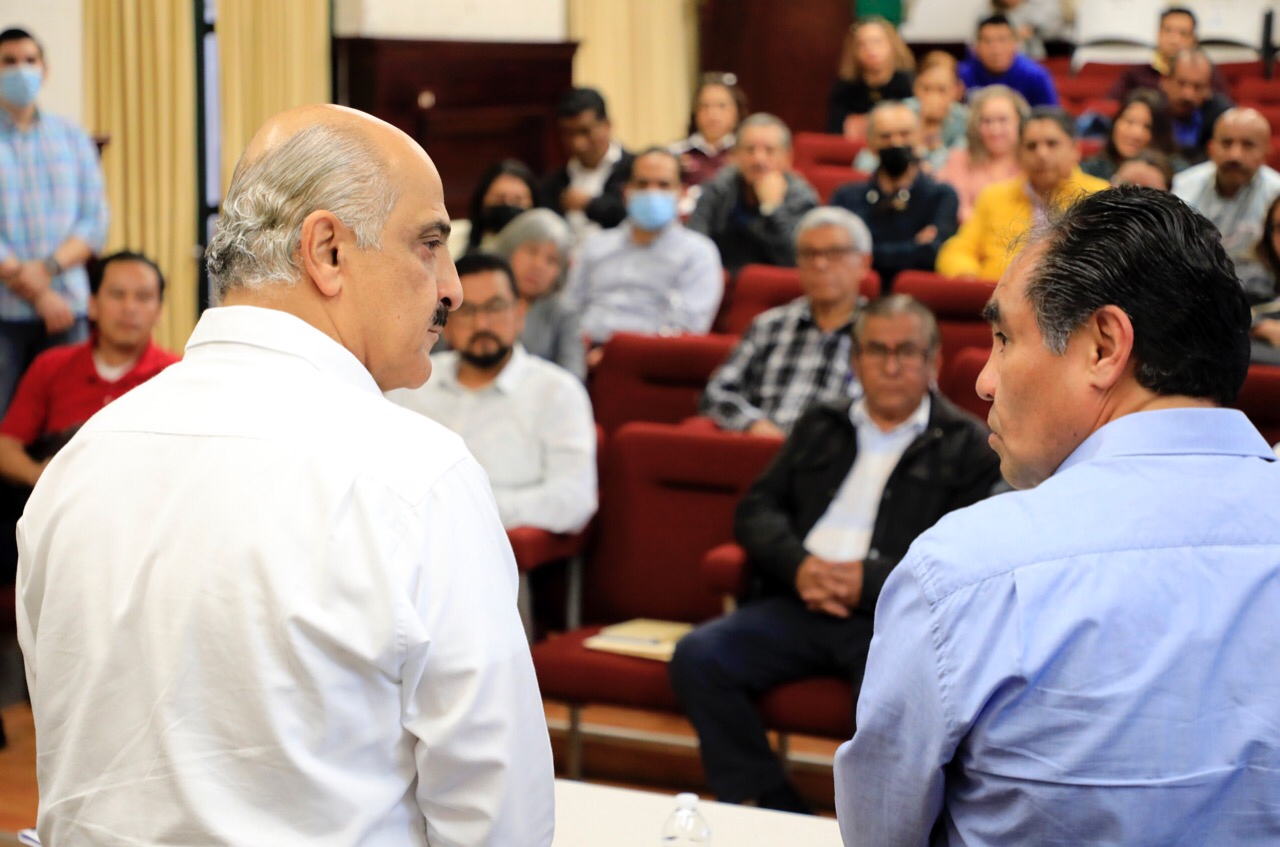 Xalapa, Ver.- El presidente municipal Ricardo Ahued Bardahuil refrendó la voluntad de la Administración para establecer un relación institucional y un diálogo franco y honesto que permita tomar los acuerdos que mejoren las condiciones laborales de los empleados del Ayuntamiento.