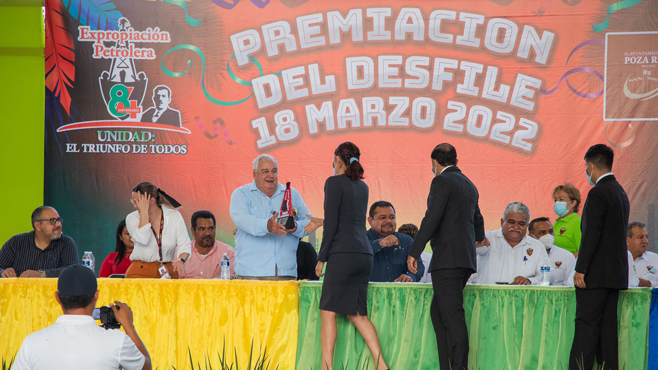 Poza Rica, Ver. – Durante la premiación para los contingentes que participaron en el desfile matutino y vespertino de las Fiestas del Petróleo, autoridades municipales y del Sindicato de Trabajadores Petroleros de la República Mexicana (STPRM) de la Sección 30, refrendaron su compromiso de trabajar por el bien de Poza Rica, pues “la unidad es el triunfo de todos”.