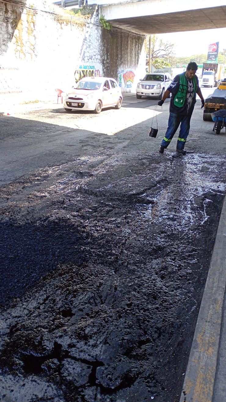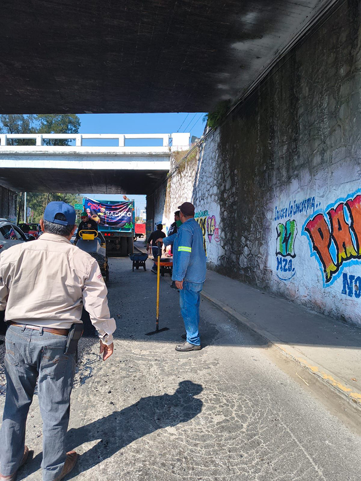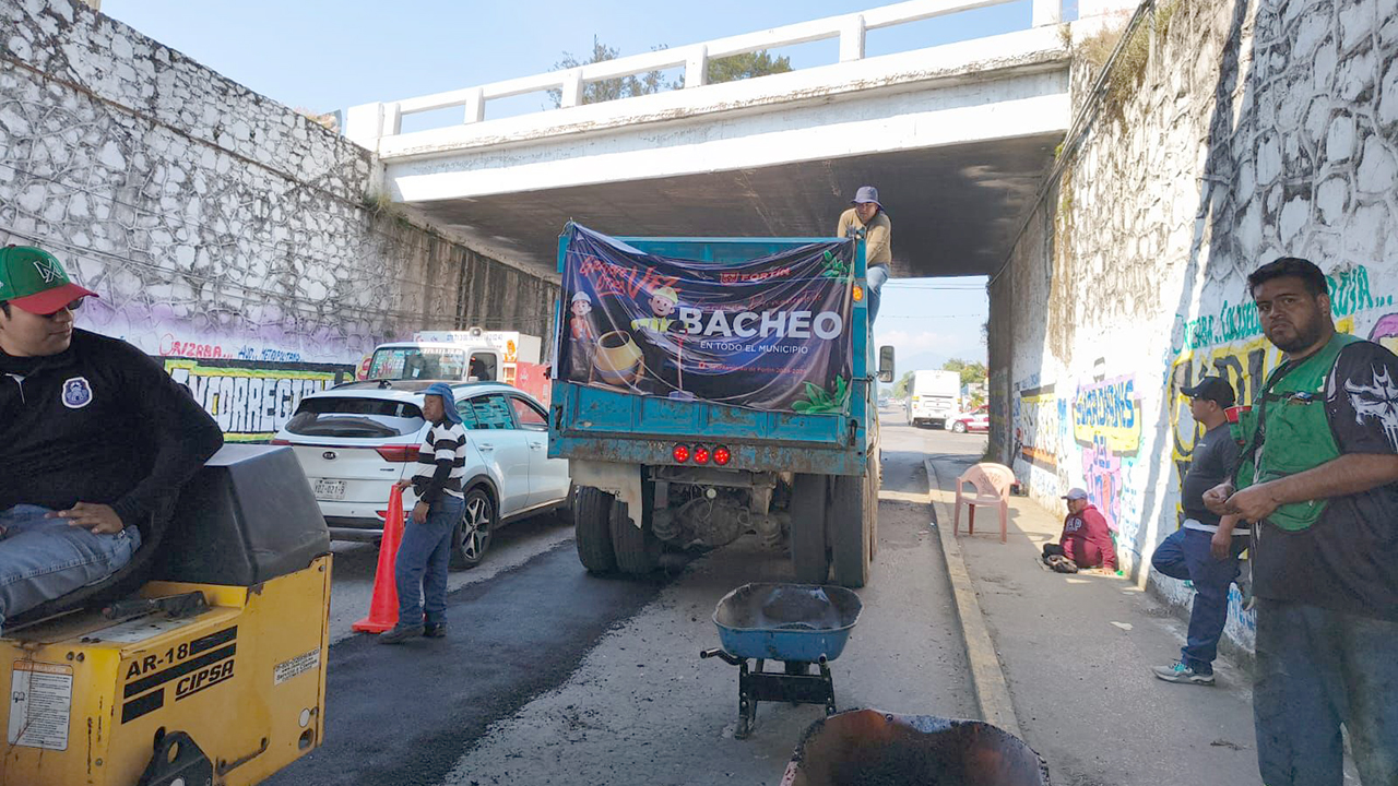 Fortín, Ver.- Debido al registro de una importante carga vehicular y al visible deterioro del asfalto, este viernes se reforzaron las acciones de la Campaña Permanente de Bacheo 2026, en el tramo de Fortín sobre la carretera federal que conduce a Huatusco y Xalapa, específicamente bajo el puente de la autopista.