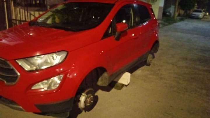 Este jueves fueron cuatro los vehículos a los que les robaron sus llantas; el pasado martes otros cuatro más amanecieron sin sus neumáticos.