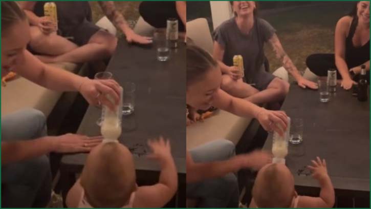 Bebé hace 'fondo' con su biberón y hasta pide 'shots'; divertido video se vuelve viral