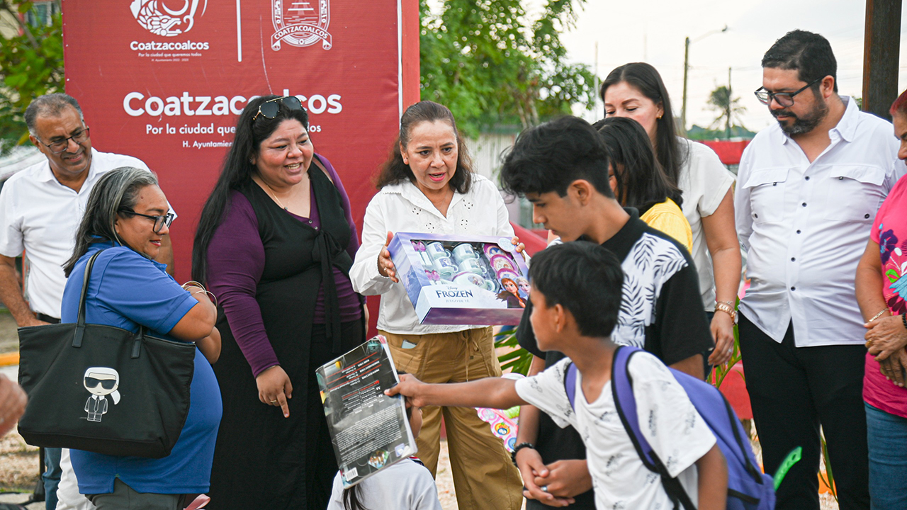 Como broche de oro, el alcalde y las autoridades municipales entregaron regalos a los niños, llenándolos de sonrisas y culminando de esta manera esta importante entrega de obras.