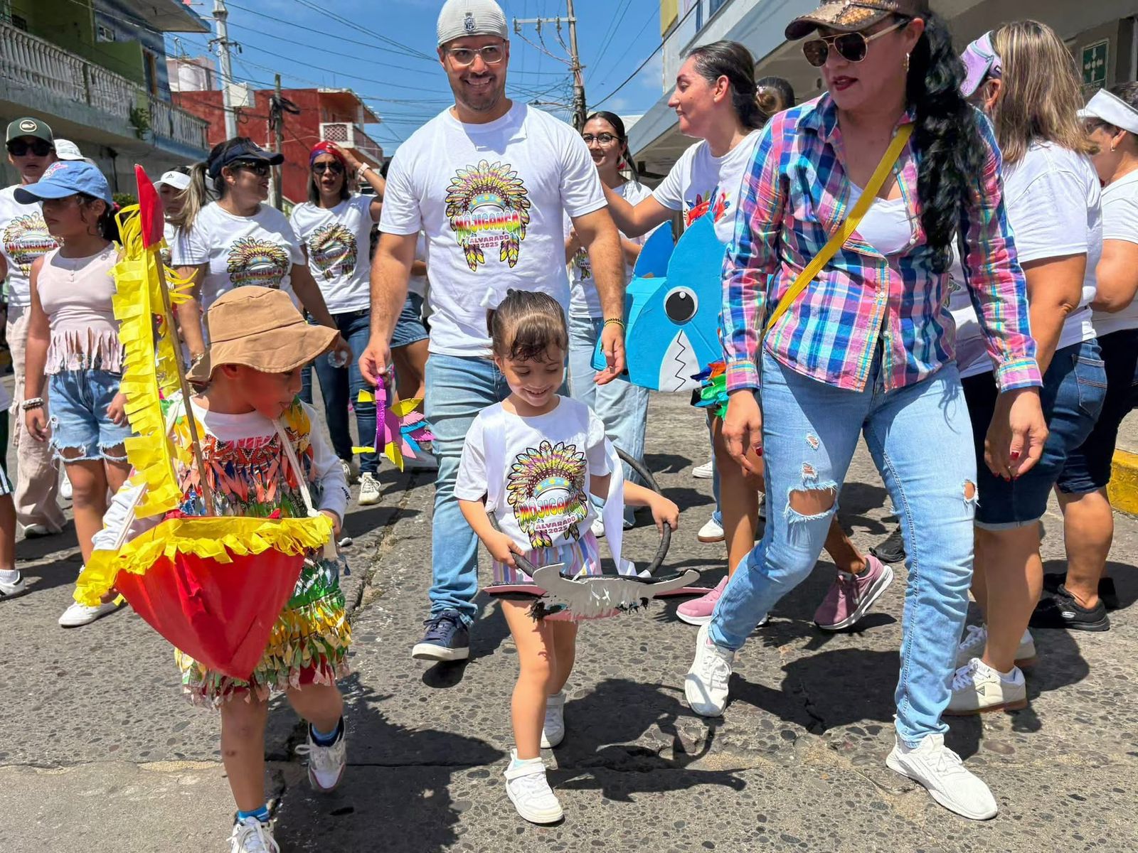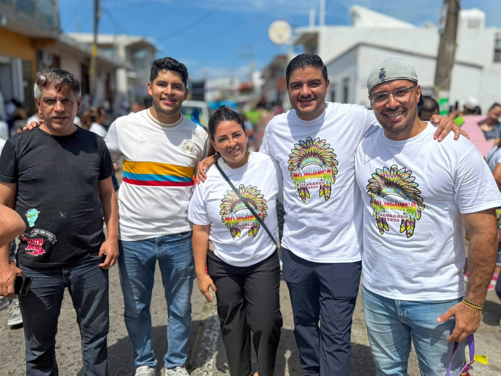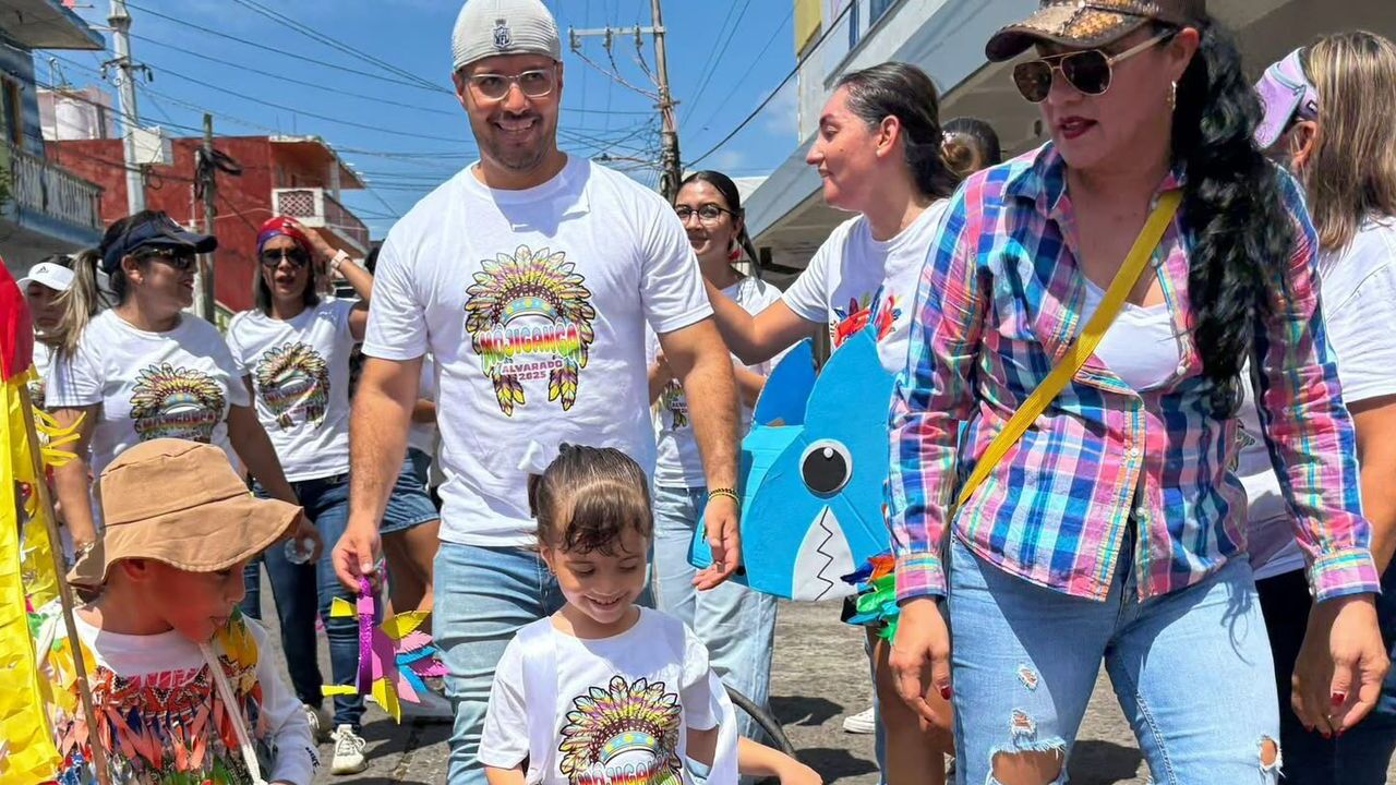 El alcalde electo de Alvarado, Beto Cobos Patricio en el inicio de las tradicionales Fiestas de Octubre en Alvarado, con la alegre mojiganga, una de las costumbres más queridas que llena de color, música y alegría las calles.