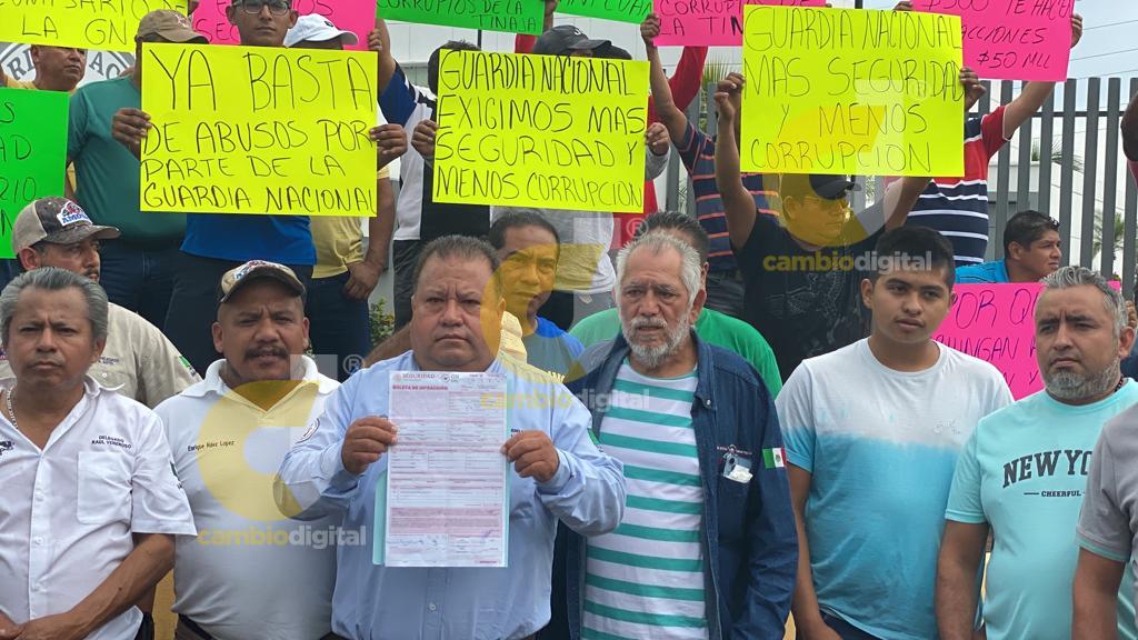 Lamentablemente los guardias nacionales en vez de que estén brindando seguridad en los tramos carreteros peligrosos, “están como aves de rapiña, cazando a los compañeros para ver cómo fregarlos y ya estamos cansados de esos abusos”.