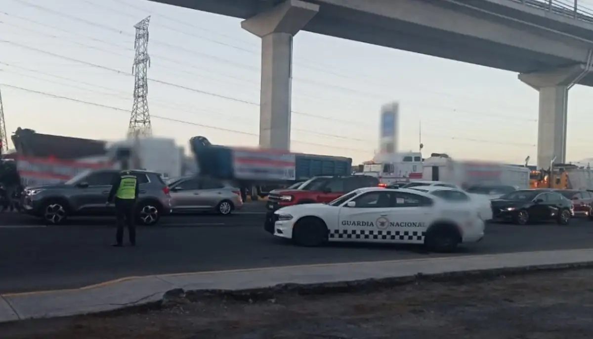 Simultáneamente, otro grupo de transportistas se colocó sobre la carretera federal Texcoco-Lechería en Tecámac, a la altura de la entrada de la Macroplaza y Circuito Exterior Mexiquense. Y uno más se instaló en la autopista Ecatepec-Pirámides en su salida hacia el municipio de Acolman.