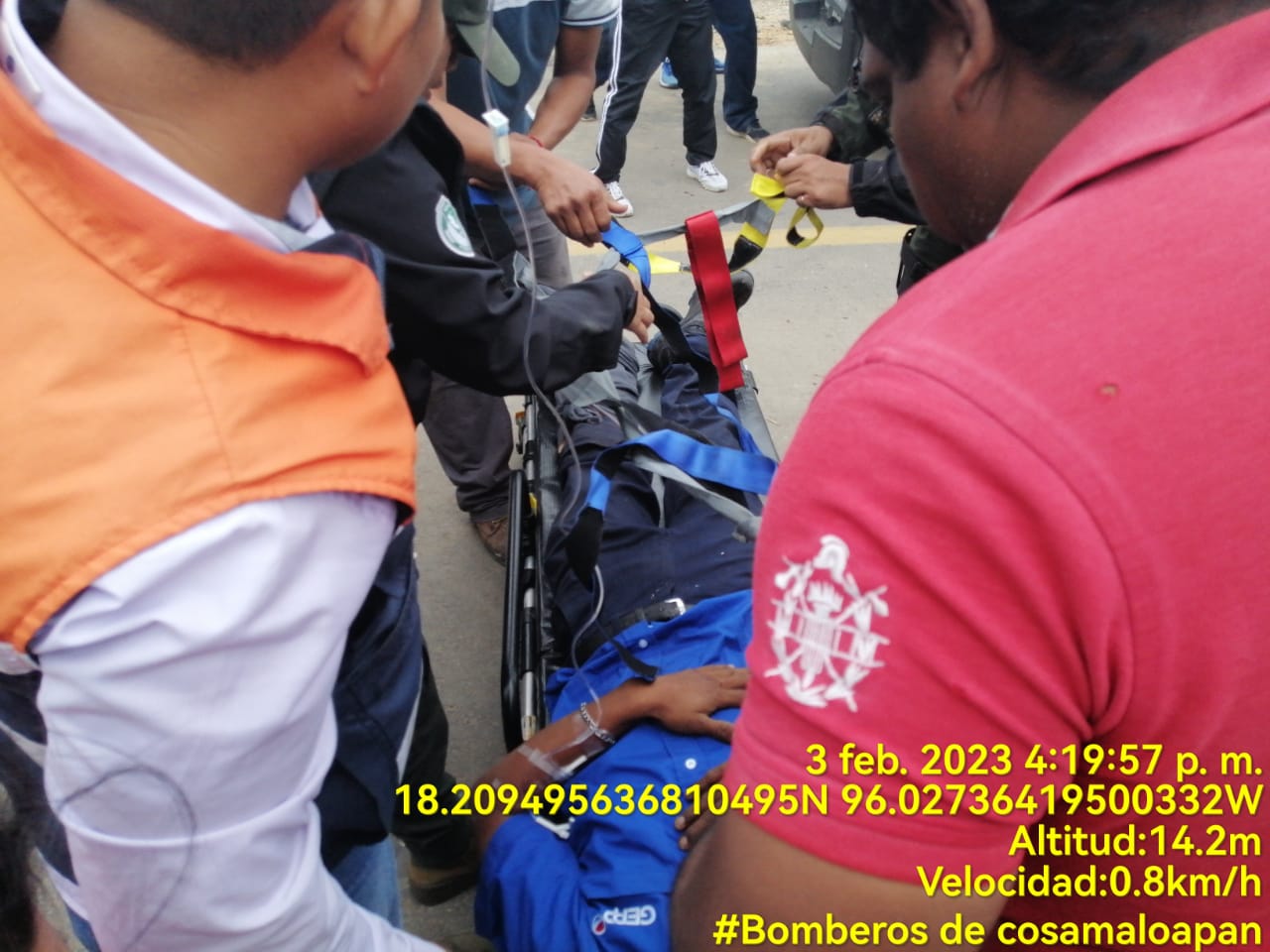 De dicha demarcación llegó también el director de Protección Civil, Carlos Flores, además del paramédico Izael Arrioja, para apoyar la acción de rescate brindando atención prehospitalaria antes y durante el traslado a Cosamaloapan.