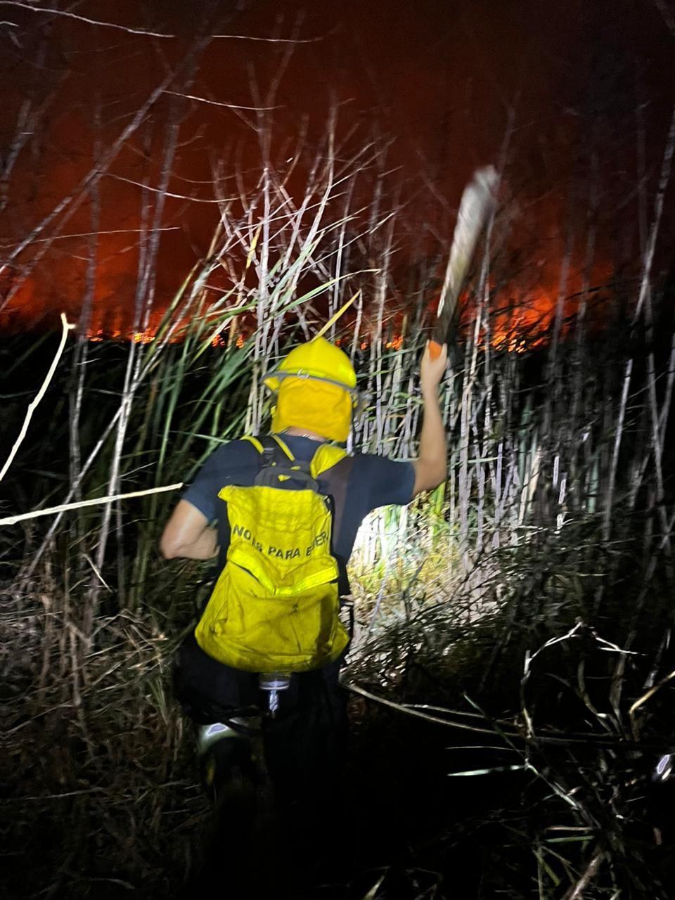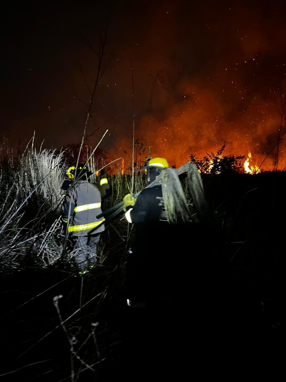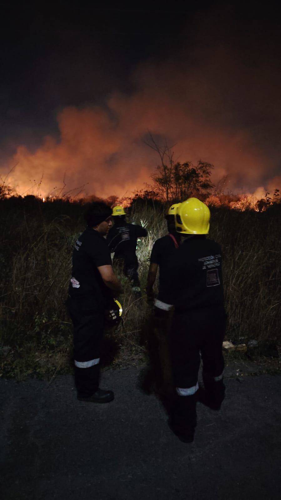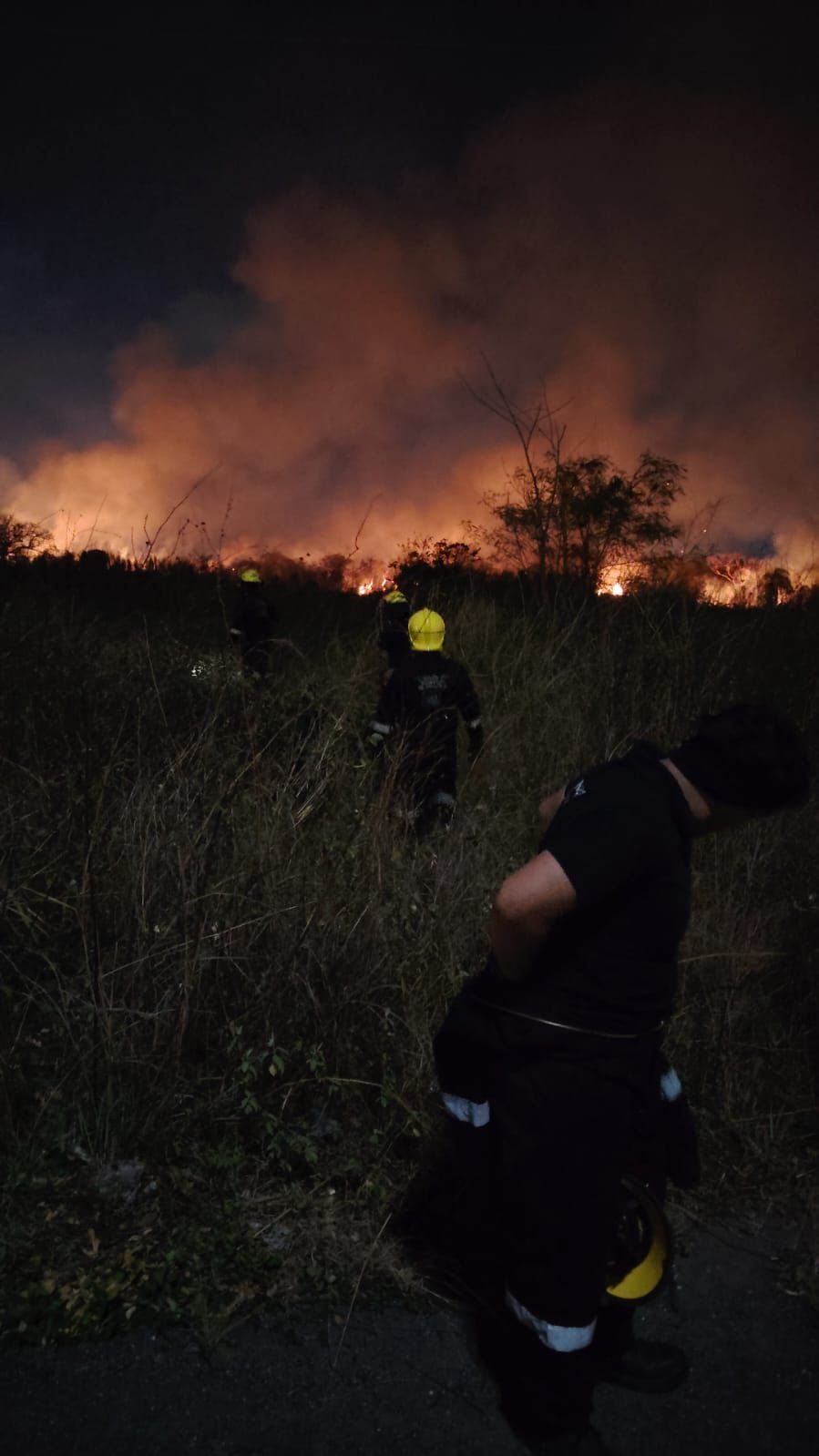 Veracruz, Ver.- Personal del Heroico Cuerpo de Bomberos y de Protección Civil municipal de Veracruz atienden el incendio de un pastizal en la zona del fraccionamiento Nuevo Veracruz, que también abarcó parte de Las Bajadas y Albatros, y que había sido controlado previamente, antes de que los equipos se trasladaran a atender otro conato en la zona de Xana.