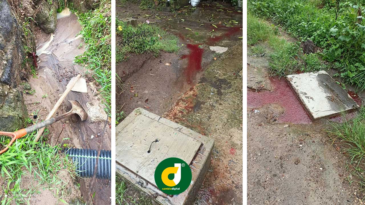 En la comunidad de El Pueblito, en Jilotepec, el agua roja ensangrentada corre permanentemente por las calles y cuando llueve se mete hasta sus casas, afectando a casi medio centenar de viviendas.
