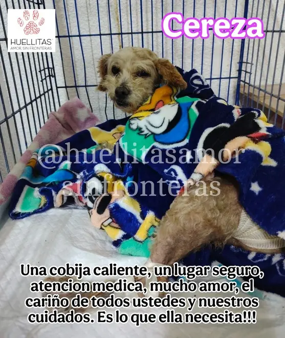 La lomita fe rescatada por una mujer que pasaba por el lugar y de inmediato la entregó a la organización “Huellitas de amor sin fronteras” de la rescatista Silvia Díaz, quienes se han encargado de brindarle toda la atención necesaria a Cereza.