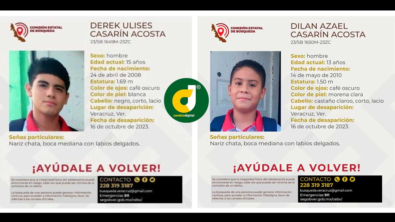 Veracruz, Ver.- La Comisión Estatal de Búsqueda emitió ficha de búsqueda de un par de hermanitos, desaparecidos desde ayer lunes 16 en la zona norte de la ciudad de Veracruz, cuando salieron de su casa con rumbo a la escuela Secundaria General “Ricardo Flores Magón” en Lomas de Río Medio 3.