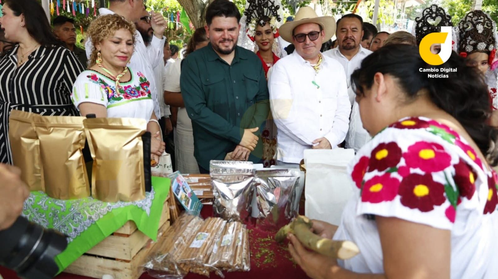 Las autoridades realizaron un recorrido por el área de exposición, donde productores locales presentan una amplia variedad de productos derivados de la vainilla, resaltando la riqueza cultural y económica de este cultivo emblemático.