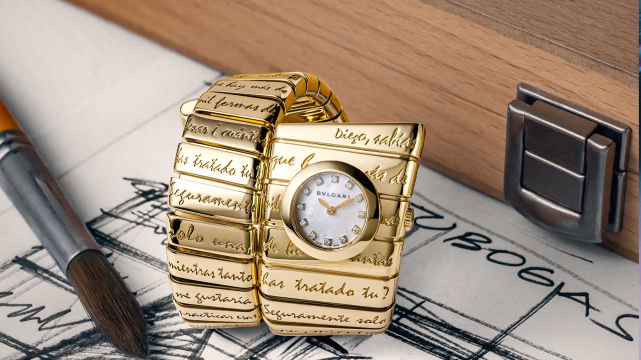 Bvlgari eligió con cuidado las palabras incorporadas en el brazalete: “Diego” es la primera, “Frida” la última. La inspiración provino de las cartas de la pintora. Fabrizio recuerda: “Cuando vimos en el techo de la Casa Azul una pintura de Diego con un reloj en el que aparecía XI en lugar de IX, pensamos: «ya lo tenemos». Era el error perfecto”. La firma también reconoció la importancia de los dibujos de Diego, de sus relojes y diseños, y los incorporó en el Octo Finissimo. Tras cambiar los números romanos, se añadió en la parte trasera un dibujo del propio artista.