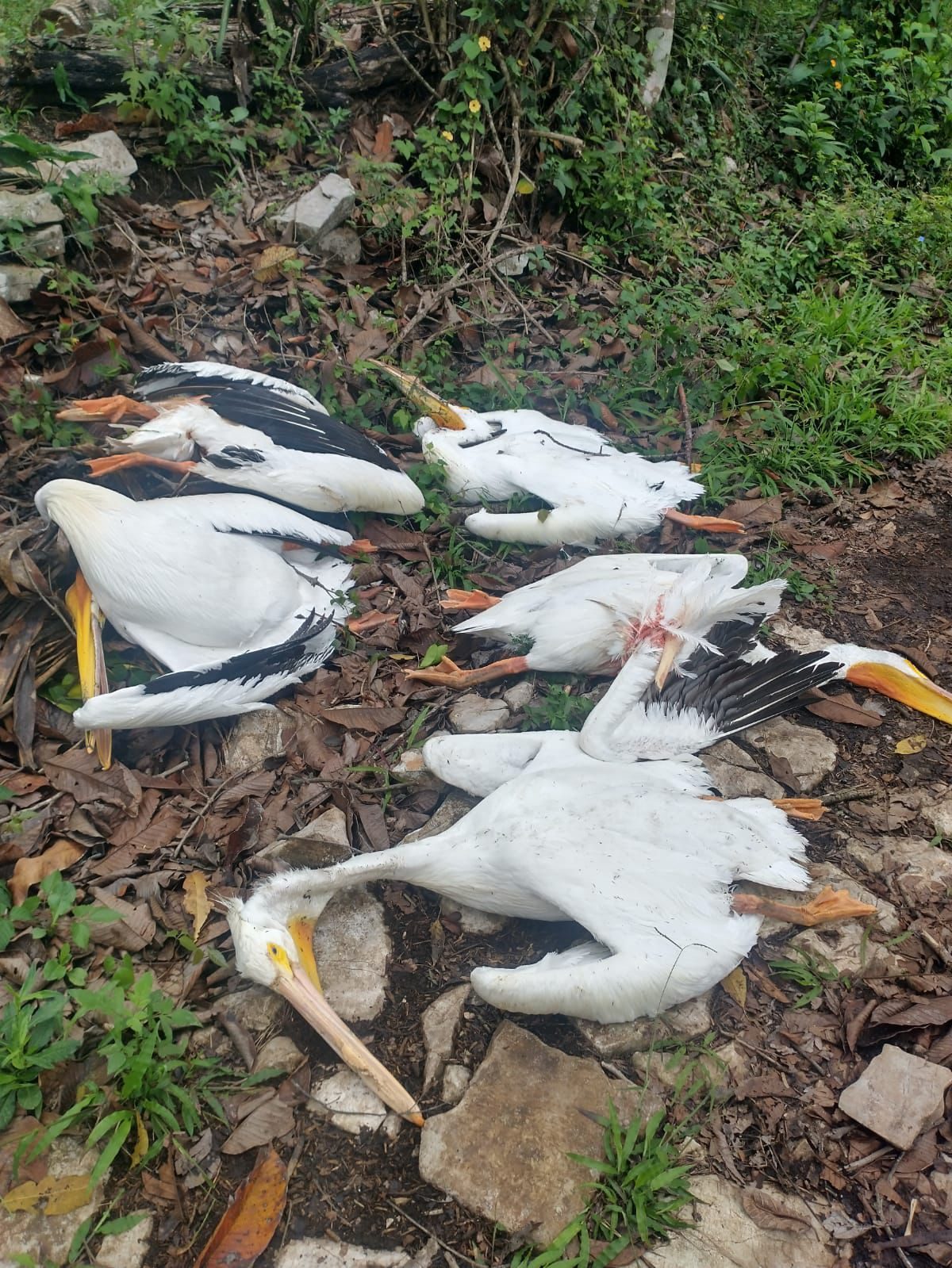 Los pelicanos adultos, con un peso promedio de 20 kilos cada uno, quedaron muertos y hasta ahora se desconoce la causa del deceso.