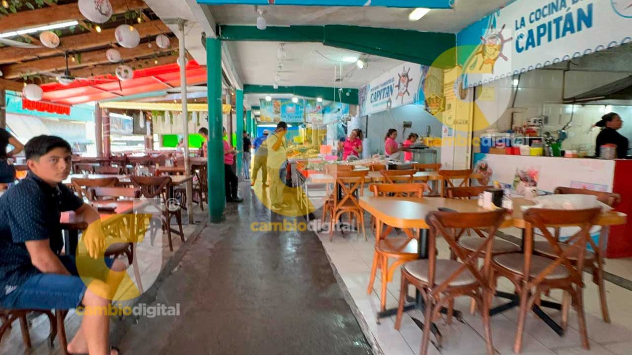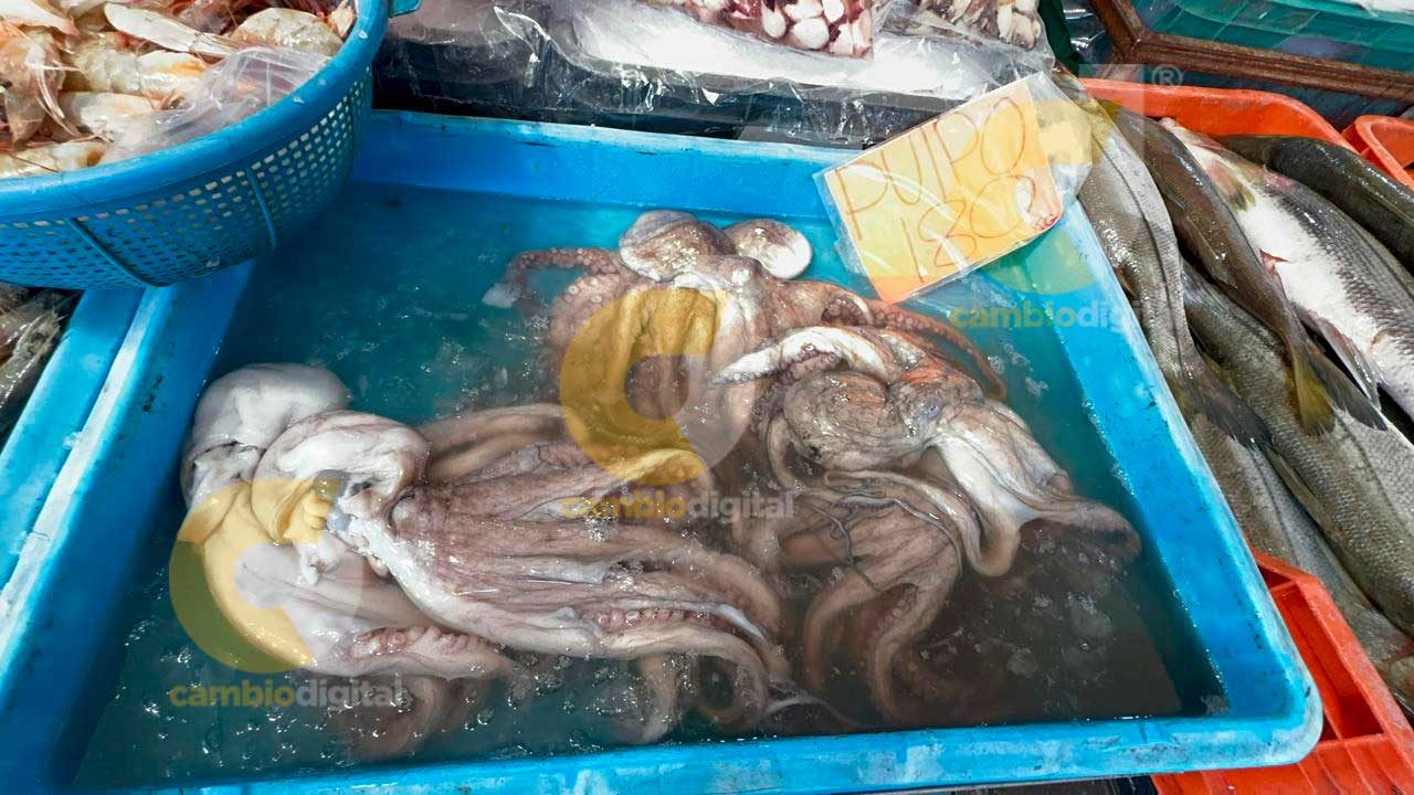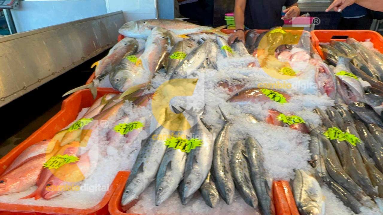 Estos últimos están ofreciéndolos entre 38 y 45 pesos el kilo y ni así sale; la gente prefiera pagar a 140 el kilo de sierra, 250 pesos el chucumite o el robalo, 190 el kilo de pargo, 180 pesos el pulpo y 200 el kilo de camarón cristal, aunque es más caro el de río.