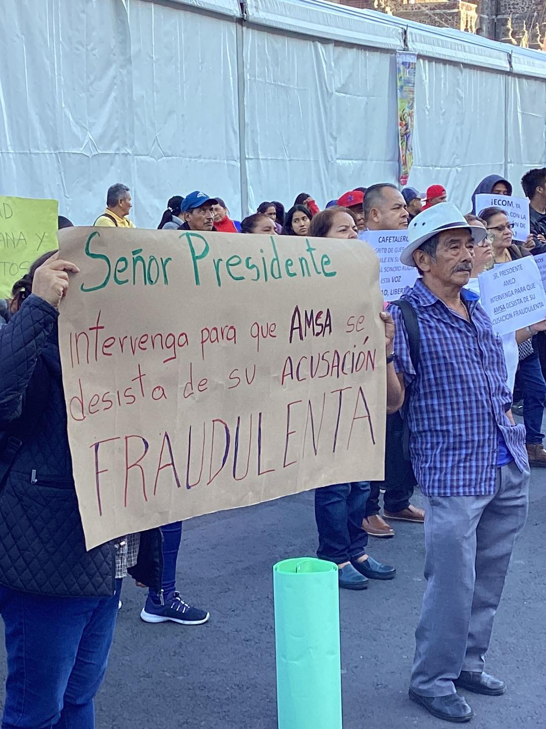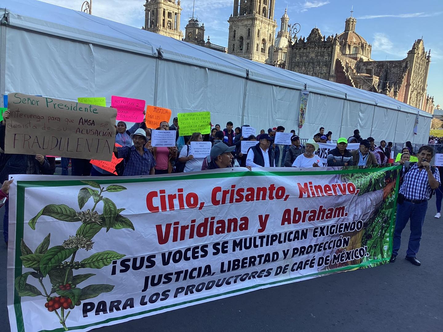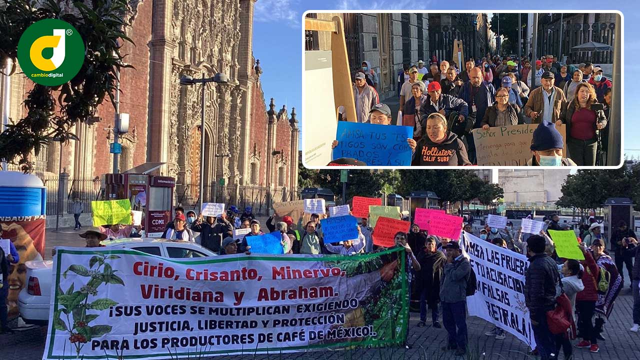 Por ello este día se manifestaron frente a la entrada del Palacio Nacional para solicitar la intervención del Presidente Andrés Manuel López Obrador “para que se termine el abuso que está cometiendo la empresa cafetera transnacional AMSA- ECOM en Veracruz, que ha acusado con pruebas falsas a varios cafetaleros de los cuales el 26 de mayo cinco de ellos fueron detenidos”. Los acusados participaron en protestas, en enero de 2022 por la baja arbitraria de los precios del café que realizo la empresa, a pesar del alto precio internacional del aromático.
