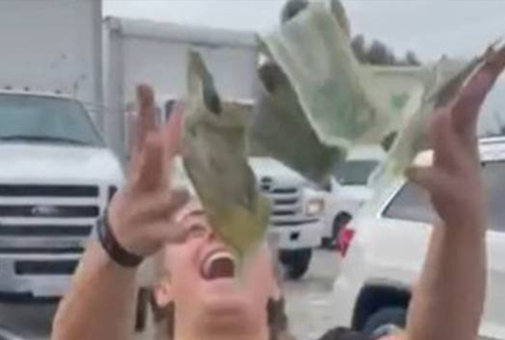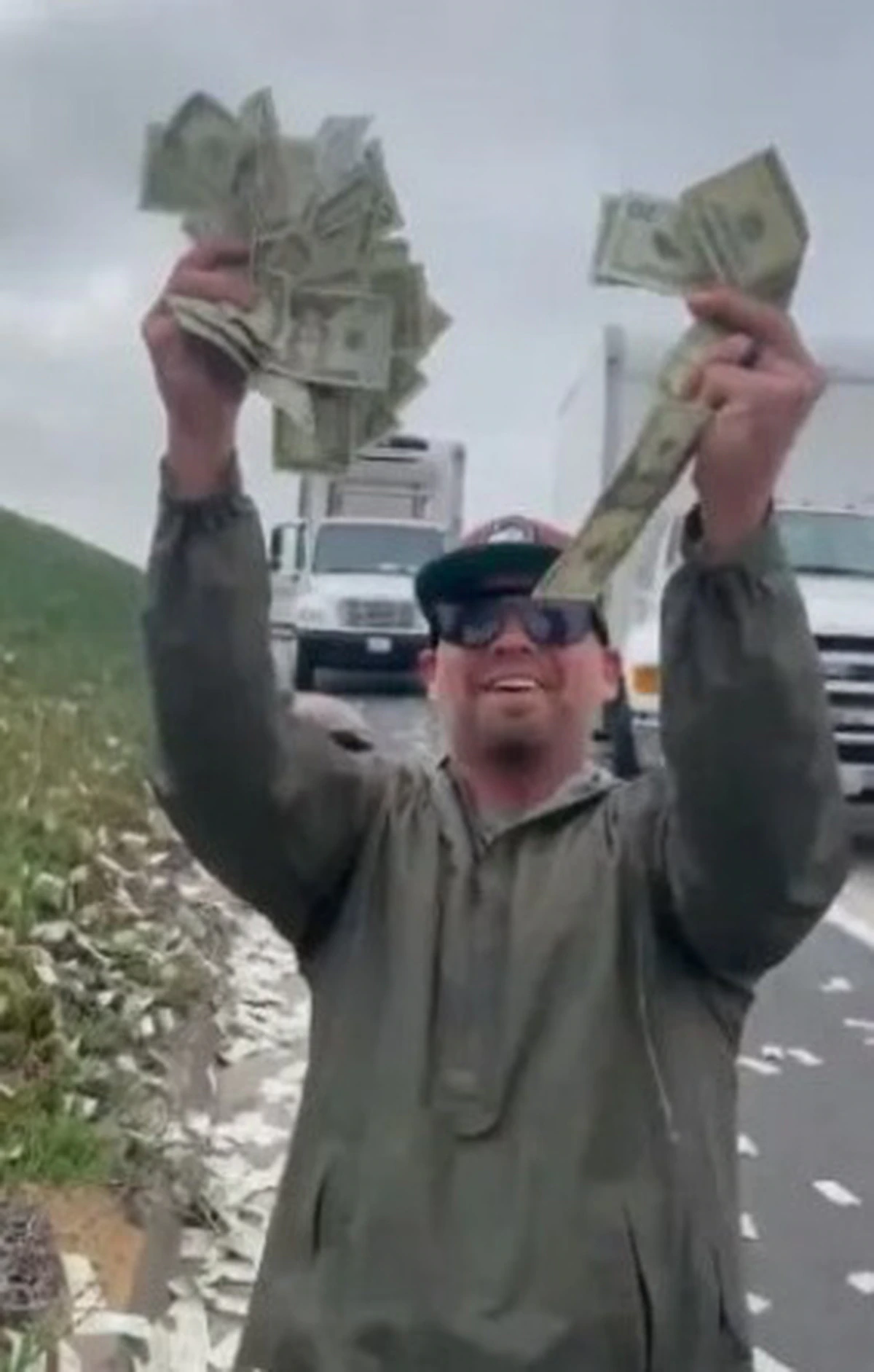 En el video se puede apreciar cientos de fajos de billetes al rededor de la autopista con varios vehículos detenidos bloqueando la autopista de California para tomar un poco del dinero.