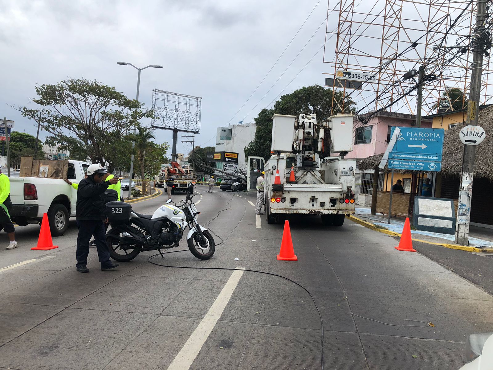 Boca del Río, Ver.- Una camioneta derribó un poste de luz y chocó contra un inmueble en Boca del Río.